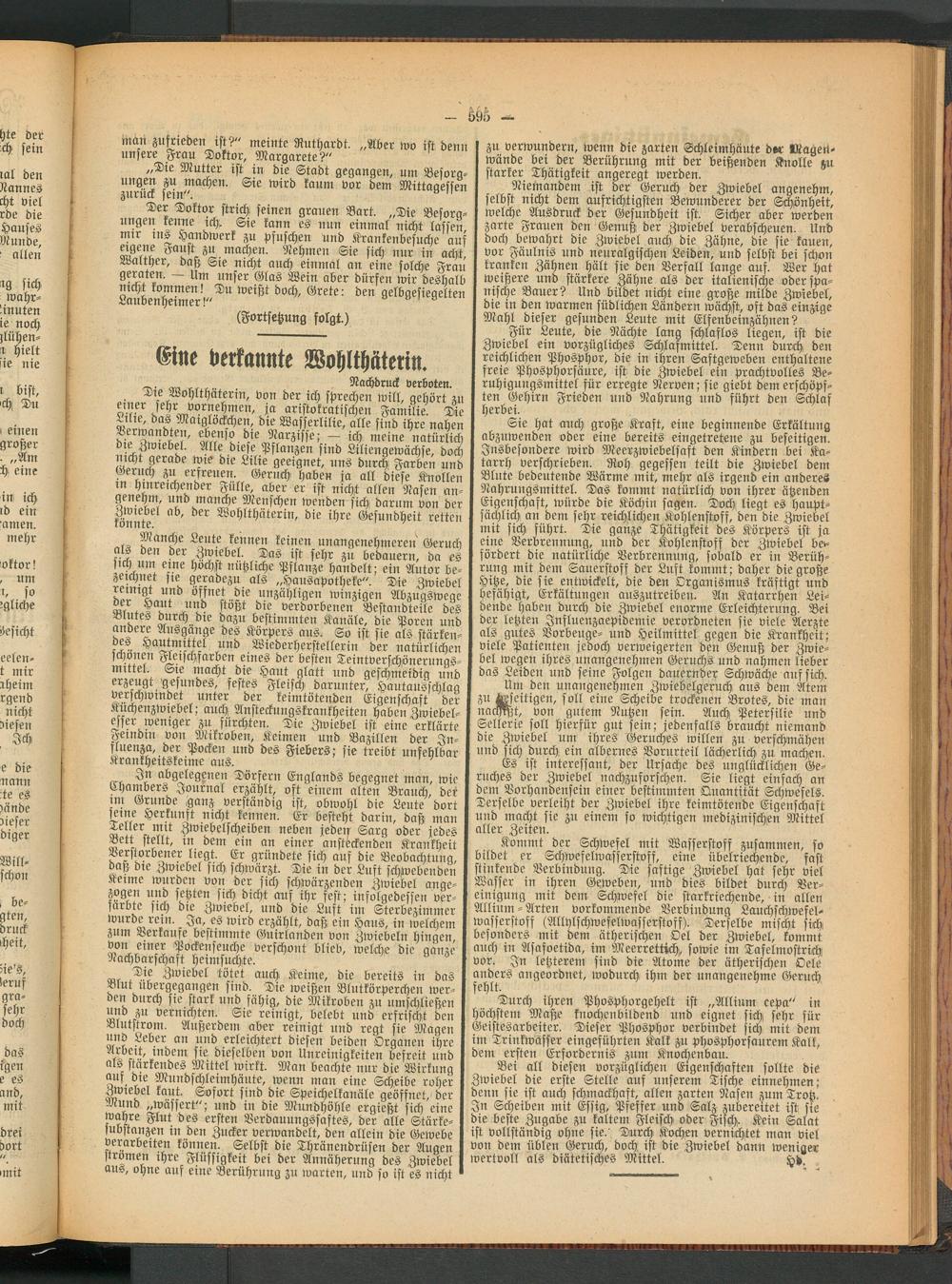Niemandem ist der Geruch der Zwiebel angenehm, selbst nicht dem aufrichtigsten Bewunderer der Schönheit, welche^Ausdruck der Gesundheit ist. Sicher aber werden mir in? iFx««^' * - - --—* »*«#*■ i zarte Frauen den Genuß! der Zwiebel verabscheuen. Und