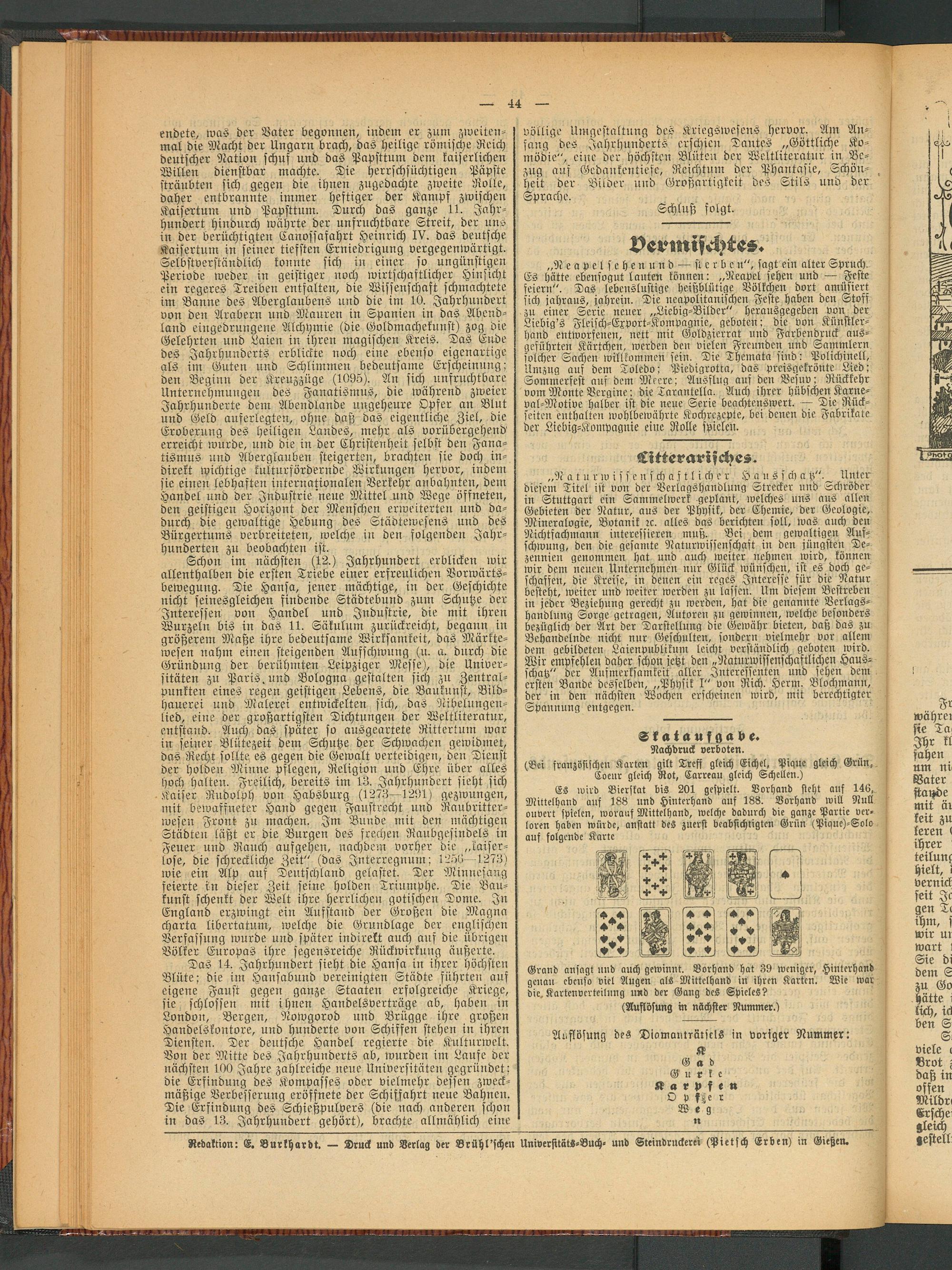 Redaktion: E. Burkhardt. — Druck und Verlag der Brühl'schm UniversttätS-Buch- und Steindruckerei (Pietsch Erben) in Gießen.