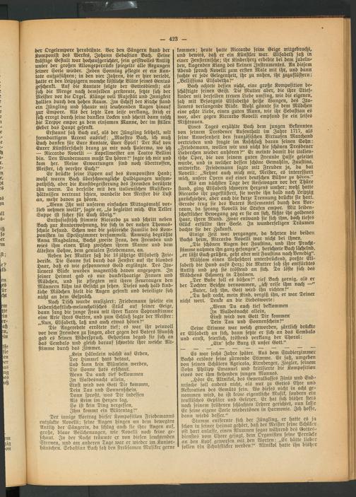 Enthusiastisch stimmte Riccardo zu und schritt neben Bach zur Kantorwohnung, die sich in der nahen Thomas- schule befand. Schon war die zahlreiche Familie des Komponisten im Speisezimmer versammelt. Anmutig begrüßte Anna Magdalena, Bachs.zweite Frau, den Fremden und wies ihm einen Platz zwischen ihrem Manne und dem ältesten Sohne, dem genialen Friedemann, an.