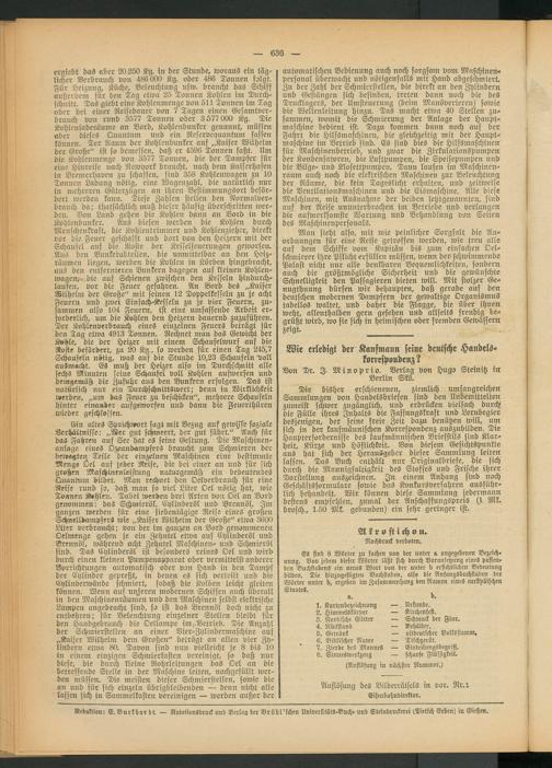 Die bisher erschienenen, ziemlich umfangreichen Sammlungen von Handelsbriefen sind den Unbemittelten zumeist schwer zugänglich, und erdrücken vielfach durch die Fülle ihres Inhalts die Fassungskraft und Lernbegier desjenigen, der seine freie Zeit dazu benützen will, um sich in der kaufmännischen Korrespondenz auszubilden. Die Haupterfordernisse des kaufmännischen Briefstils sind Klarheit, Kürze und Höflichkeit.. Von diesem Gesichtspunkte aus hat sich der Herausgeber dieser Sammlung leiten lassen. Das Buch enthält nur Originalbriefe, die sich durch die Mannigfaltigkeit des Stoffes und Frische ihrer Darstellung auszeichnen. Zn einem Anhang sind noch Geschäftsformulare sowie das Konkursverfahren ausführlich behandelt. Wir können diese Sammlung jedermann bestens empfehlen, zumal der Anschaffungspreis (1 Mk, bvosch., 1.50 Mk. gebunden) ein sehr geringer ist.