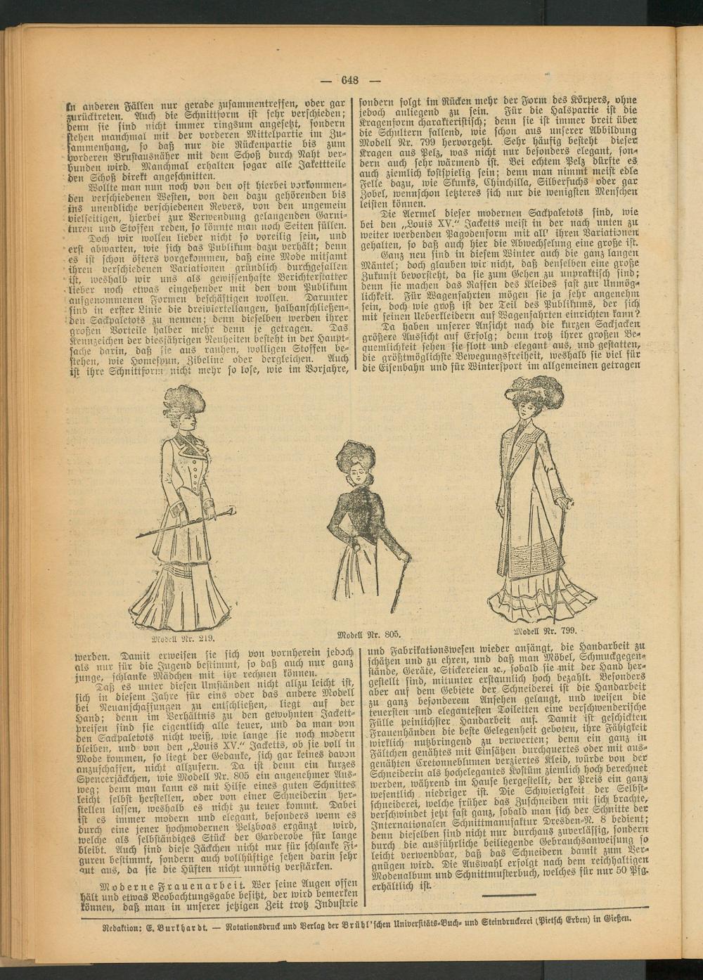 Wollte man nun noch von den oft hrerbet vorkommenden verschiedenen Westen, von den dazu gehörenden brs jns unendliche verschiedenen Revers, von den ungemein vielseitigen, hierbei zur Verwendung gelangenden Garnituren und Stoffen reden, so könnte mau noch Seiten füllen.