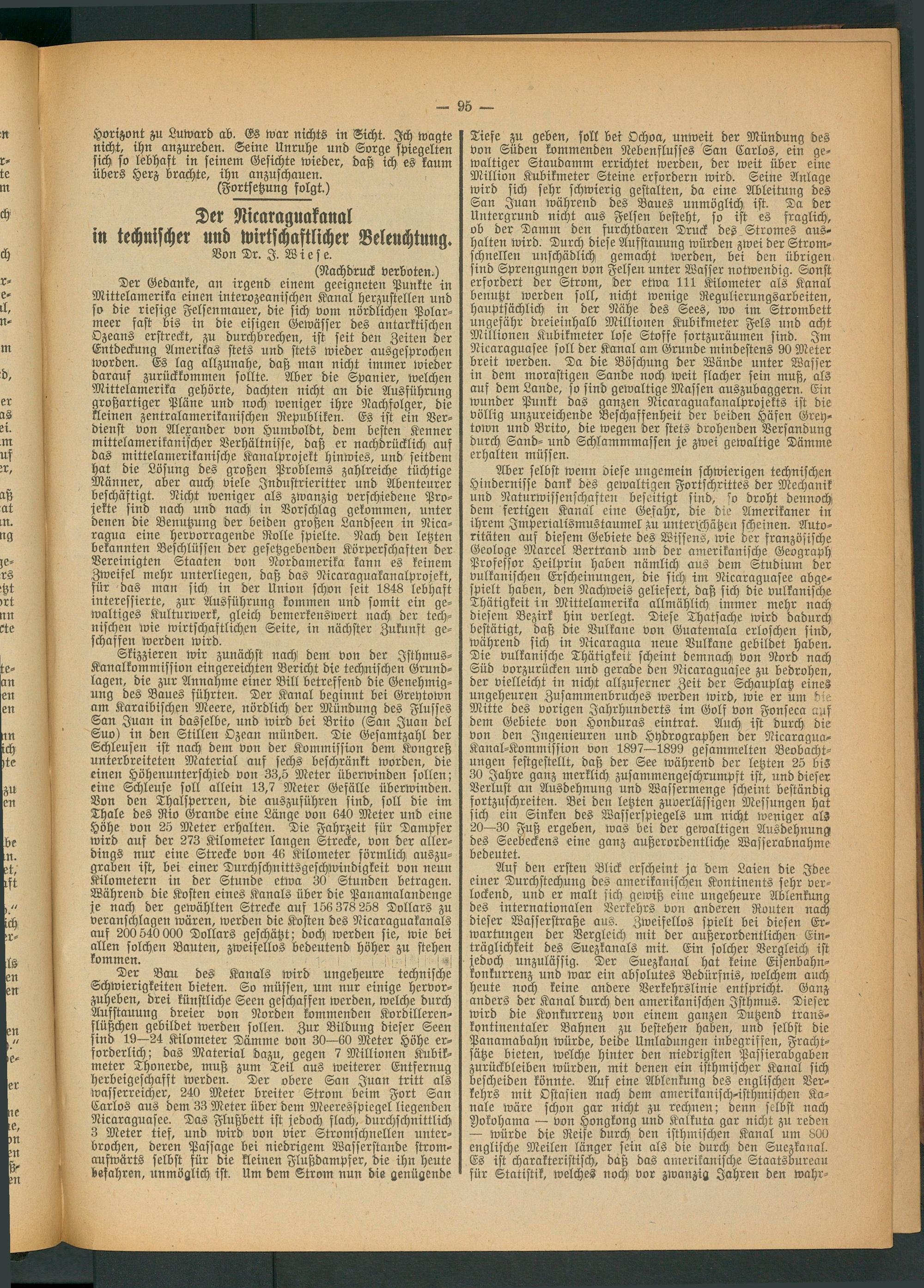 Der Nicaraguakanal in technischer und wirtschaftlicher Beleuchtung.