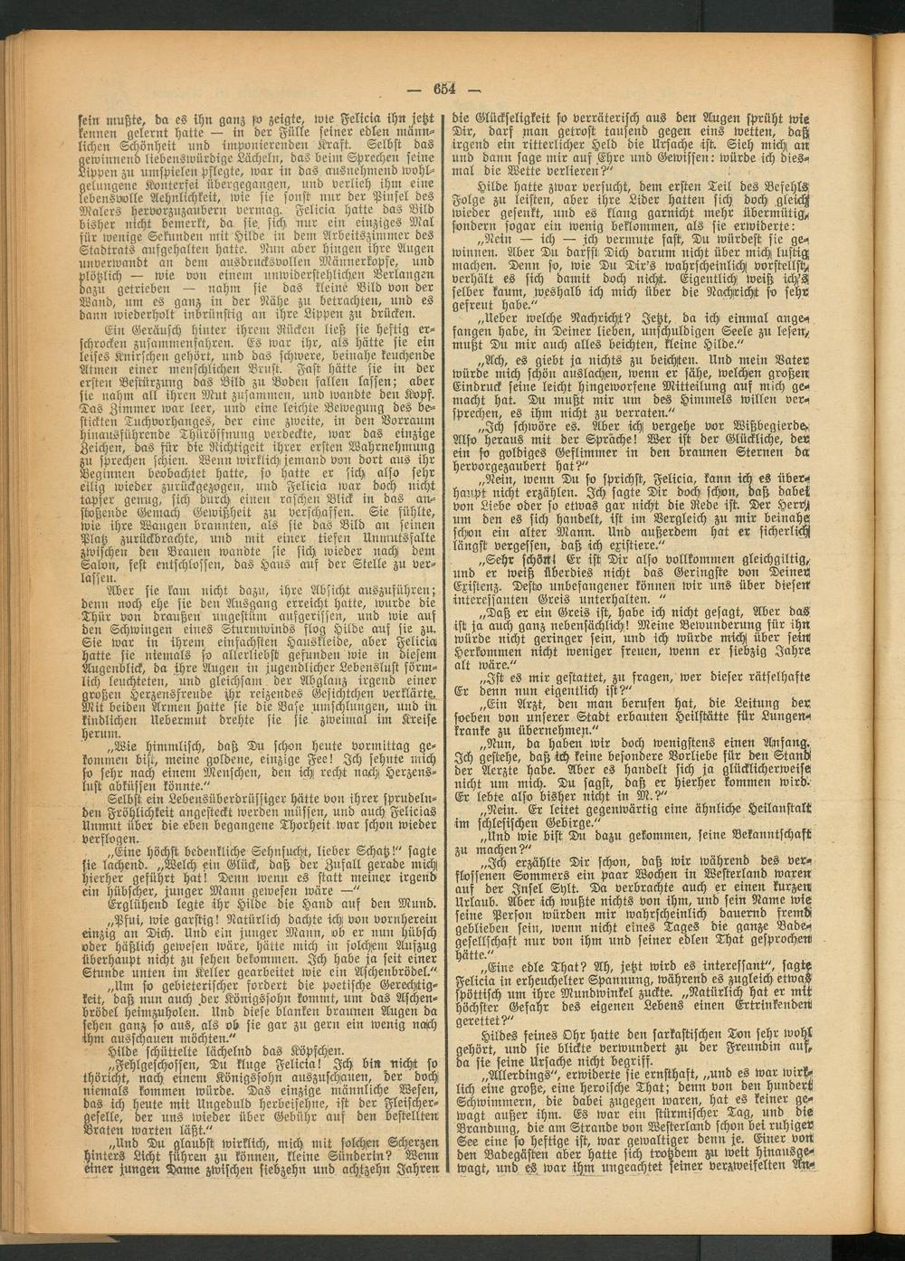 „Nun, da haben' wir doch wenigstens einen Anfang. Ich gestehe, daß ich keine besondere Vorliebe für den Stand der Aerzte habe. Wer es handelt sich ja glücklicherweise nicht um mich. Du sagst, daß er hierher kommen wiriü Er lebte also bisher nicht in M.?"