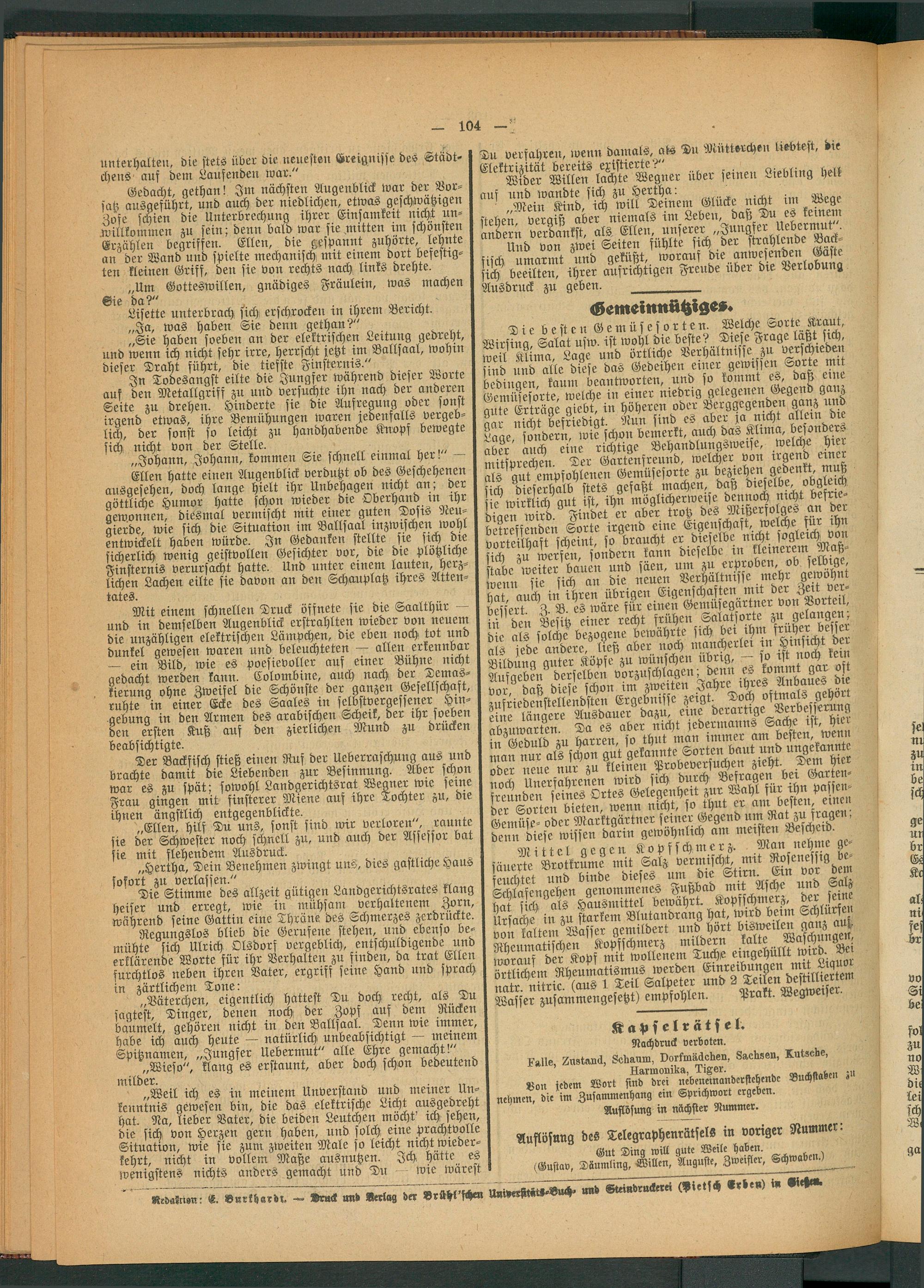 kenntnis gewesen bin, die das elektrische Licht ausgedreht ! ' Auflösung in nächster Nummer,