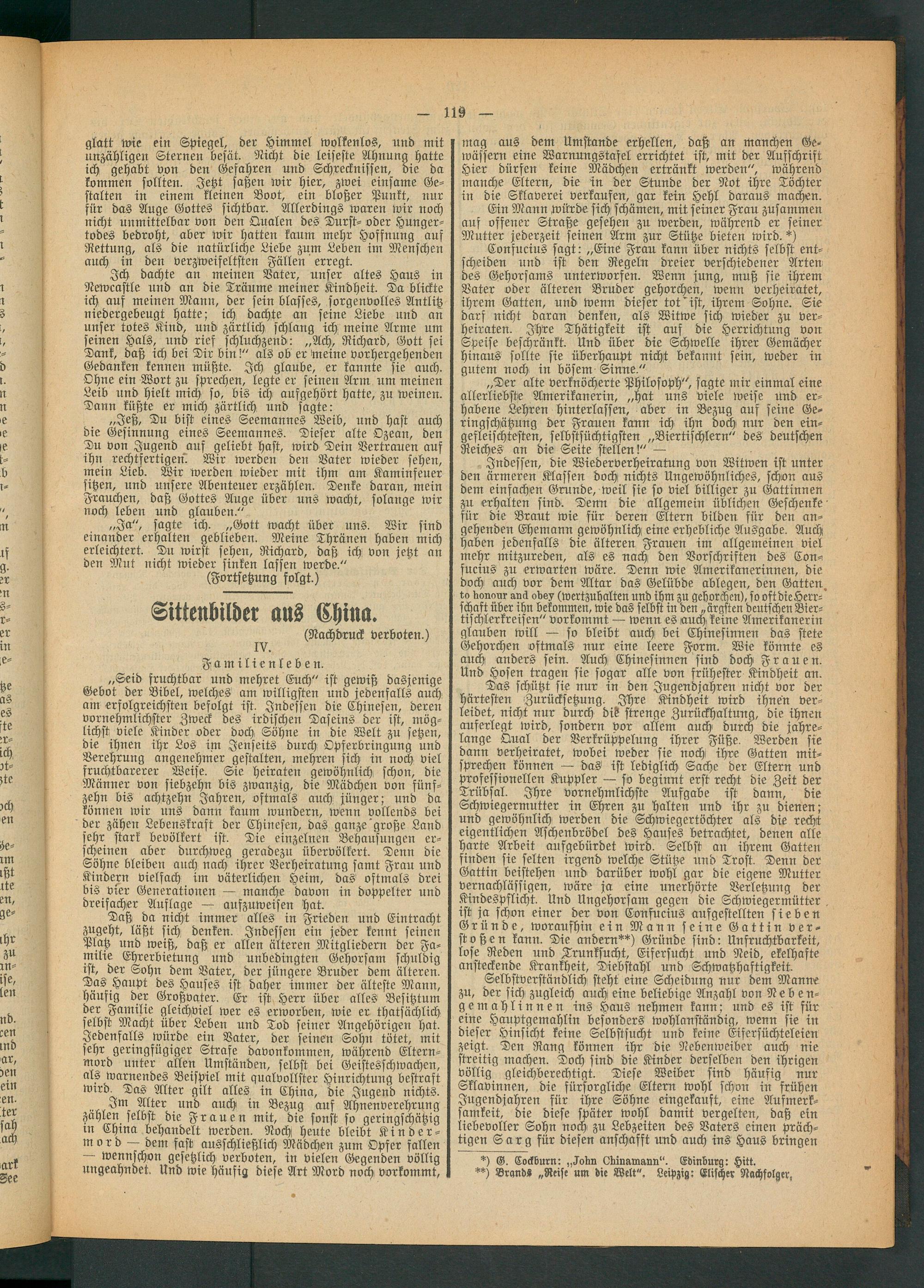 mag aus dem Umstande erhellen, daß an manchen Gewässern eine Warnungstafel errichtet ist, mit der Aufschrift Hier dürfen keine Mädchen ertränkt werden", während manche Eltern, die in der Stunde der Not ihre Töchter in die Sklaverei verkaufen, gar kein Hehl daraus machen.