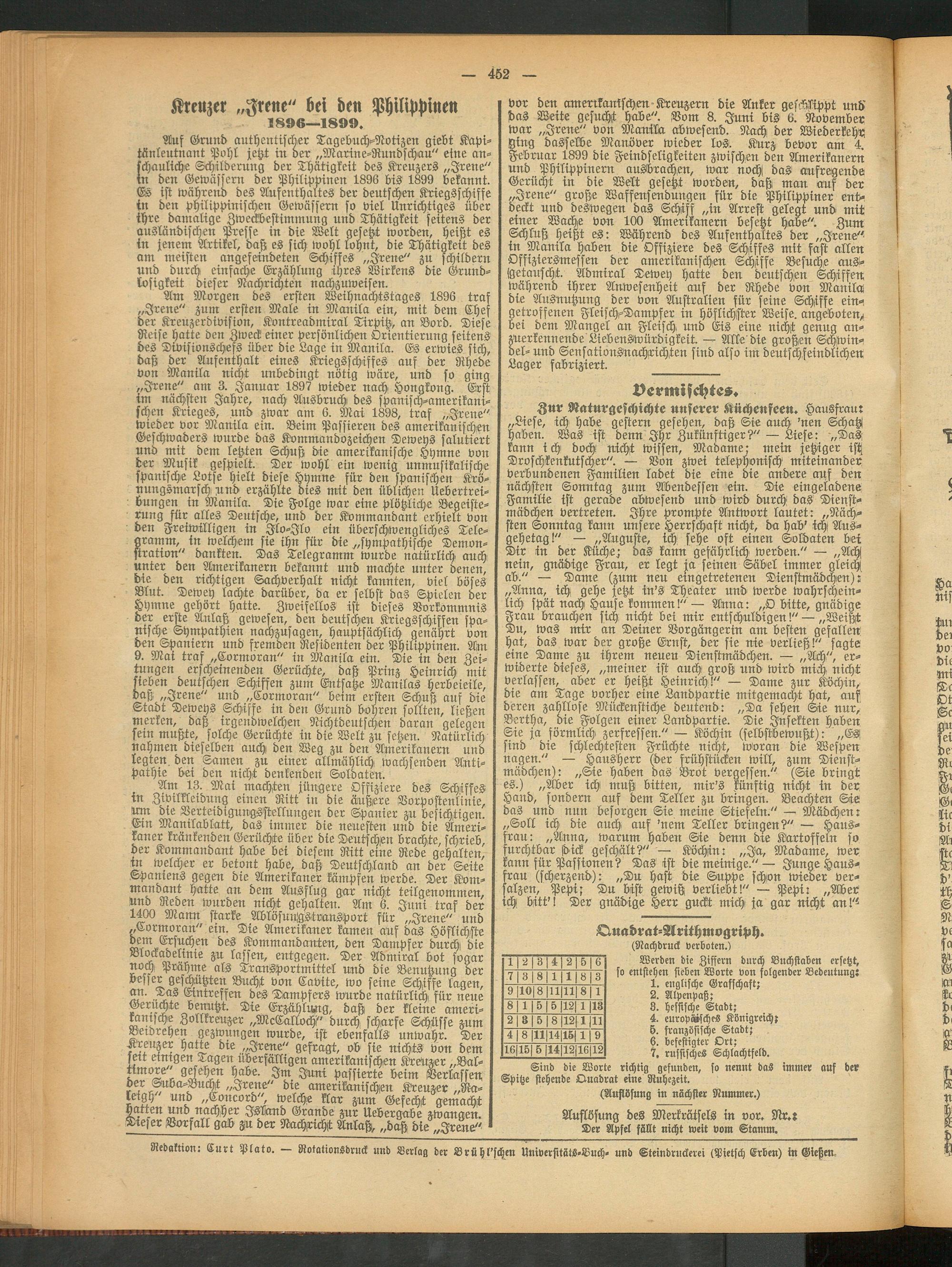 Redaktion: Curt Plato. Rotationsdruck und Verlag der Brühl'schen UniversitätS-Buch- und Steindrnckerei (Pietsch Erben) in Gießen.