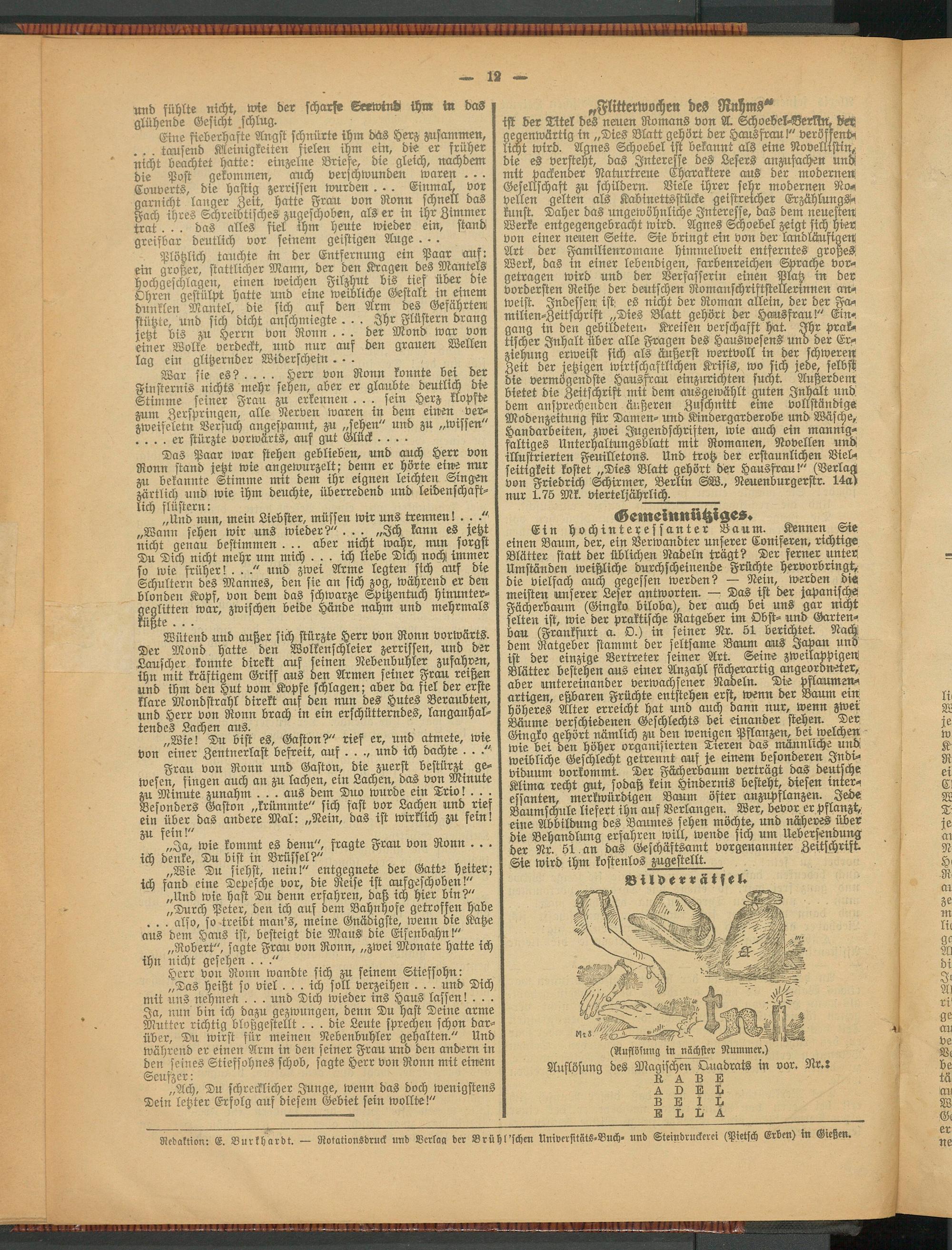 Redaktion: E. Burkhardt. - Rotationsdruck und Bcrkaa der Brühl'schen Universttats-Buch- und Steindruckerei (Pietsch Erben) in Gießen.