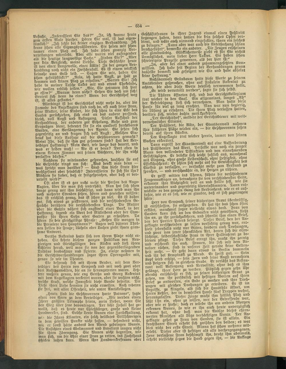 Bertha Rakenius hatte sich von ihrem Platze nicht erhoben. Sie kehrte diesem ganzen Publikum von Neugierigen und Gleichgiltigen den Rücken und ließ ihren Schleier herab, weil man sie von der gegenüberliegenden Tribüne beobachtete und fixierte. Ja, einige nehmen in die Gerichtsverhandlungen sogar ihren Operngucker mit, genau so wie im Theater.