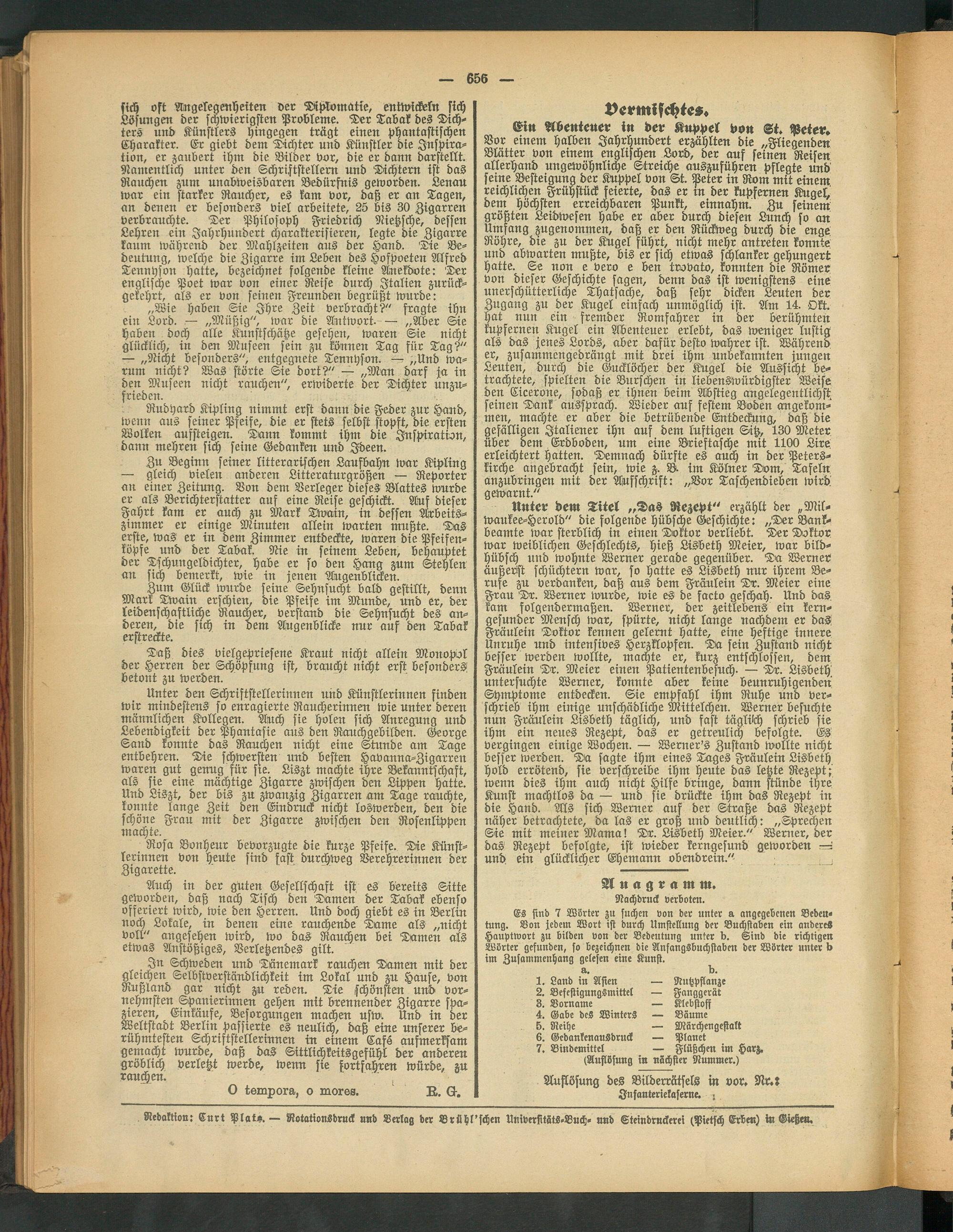 Redaktion: Cnrt PlatH. — Rotationsdruck und Verlag der Brühl'schen UniversitätS-Buch- und Steindrnckerei (Pietsch Erben) in Gießen.