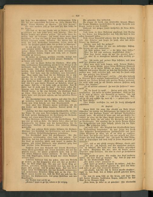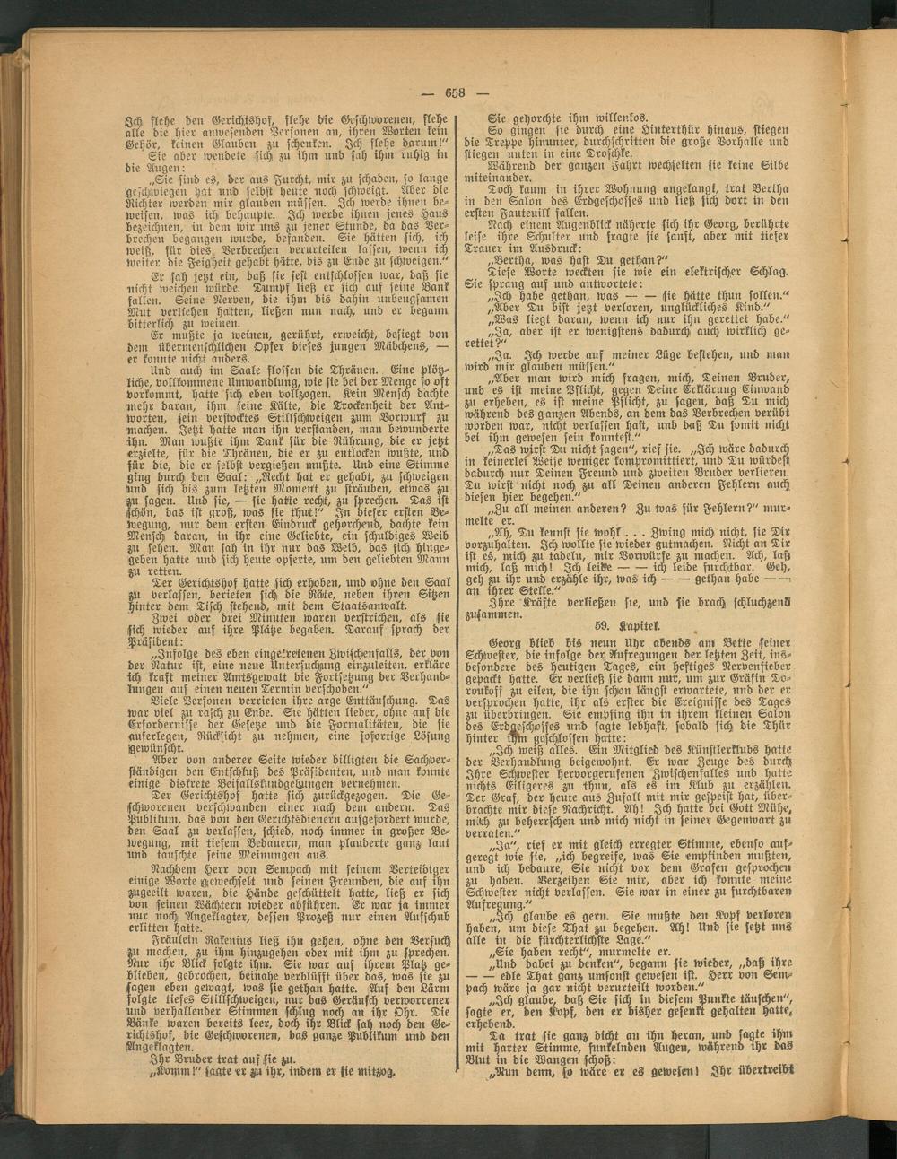 Georg blieb bis neun Uhr abends am Bette seiner Schwester, die infolge der Aufregungen der letzten Zeit, insbesondere des heutigen Tages, ein heftiges Nervenfieber gepackt hatte. Er verließ sie dann nur, um zur Gräfin Do- roukoff zu eilen, die ihn schon längst erwartete, und der er versprochen hatte, ihr als erster die Ereignisse des Tages zu überbringen. Sie empfing ihn in ihrem kleinen Salon des Erdgeschosses und sagte lebhaft, sobald sich die Thür hinter ihm geschlossen hatte: