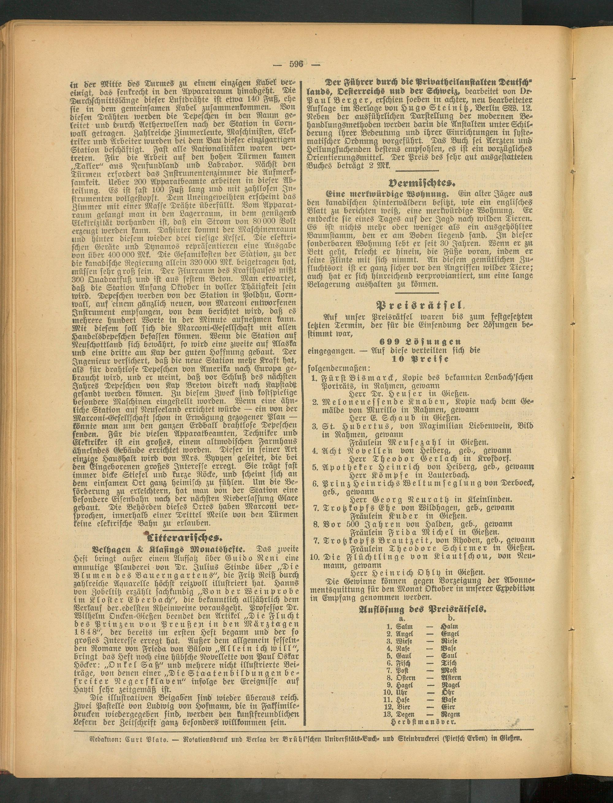 Auflösung des Preisrätsels,