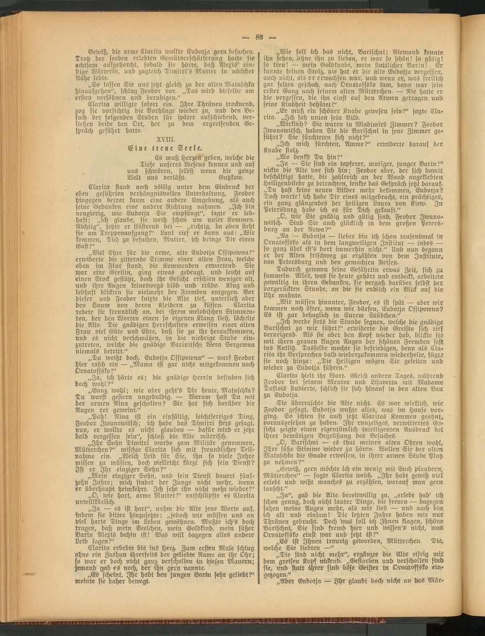 „Pah! Nina ist ein einfältig, leichtfertiges Ding, Feodor Iwanowitsch; ich habe das Dimitri stets gesagt, nun, er wollte es nicht glauben — dafür wird er jetzt bald vergessen sein", schloß die Alte mürrisch.