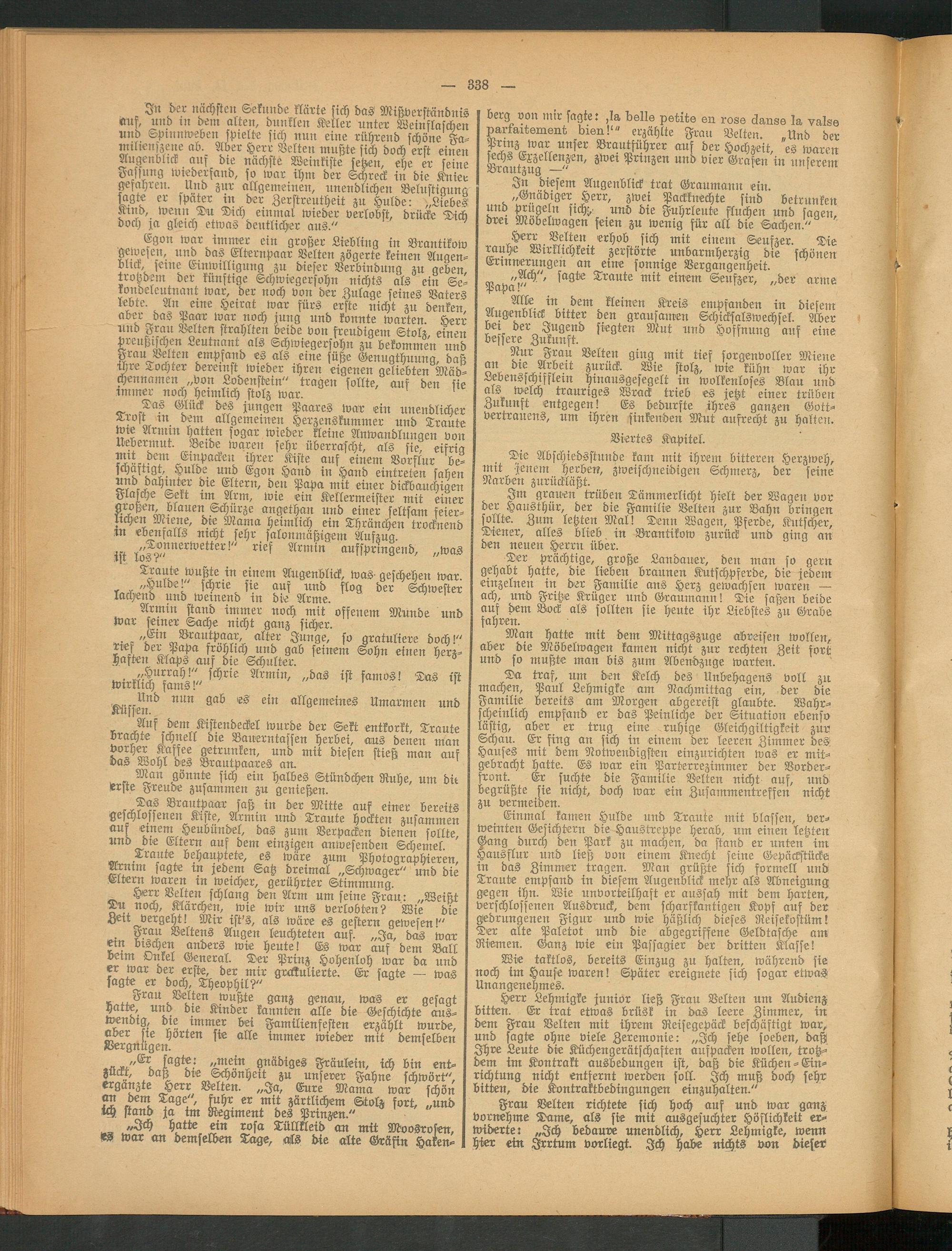 fagte: „mein gnädiges Fräulein, ich bin ent» ruckt, daß die Schönheit zu unserer Fahne schwört", ergänzte Herr Belten. „Ja, Eure Mama war schön an dem Tage", fuhr er mit zärtlichem Stolz fort, „und stand ja im Regiment des Prinzen."