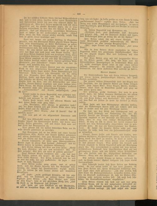 Da traf, um den Kelch des Unbehagens voll zu machen, Paul Lehmigke am Nachmittag ein, der bte Familie bereits am Morgen ab gereist glaubte. Wahrscheinlich empfanb er bas Peinliche ber Situation ebenso lästig, aber er trug eine ruhige Gleichgiltigkeit zur Schau. Er fing an sich in einem der leeren Zimmer des Hauses mit bem Notwendigsten einzurichten was er mit» gebracht hatte. Es war ein Parterrezimmer der Vorder» front. Er suchte die Familie Velten nicht auf, unb begrüßte sie nicht, doch war ein Zusammentreffen nicht zu vermeiden.