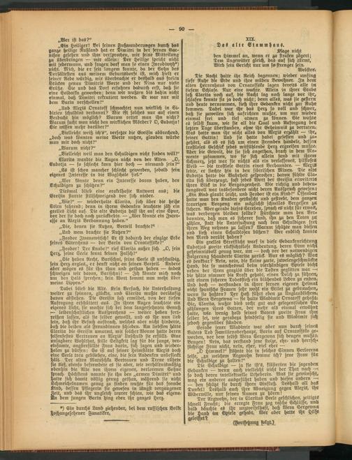 „Wie!" — wiederholte Clarita, sich über die heiße Stirn fahrend; denn in ihrem Gedanken leuchtete jäh ein grelles Licht auf. Die alte Eudotja half ihr auf eine Spur, vor der sie doch noch zurückbebte. — „Wer könnte ein Interesse an Alexis Verbannung haben-"