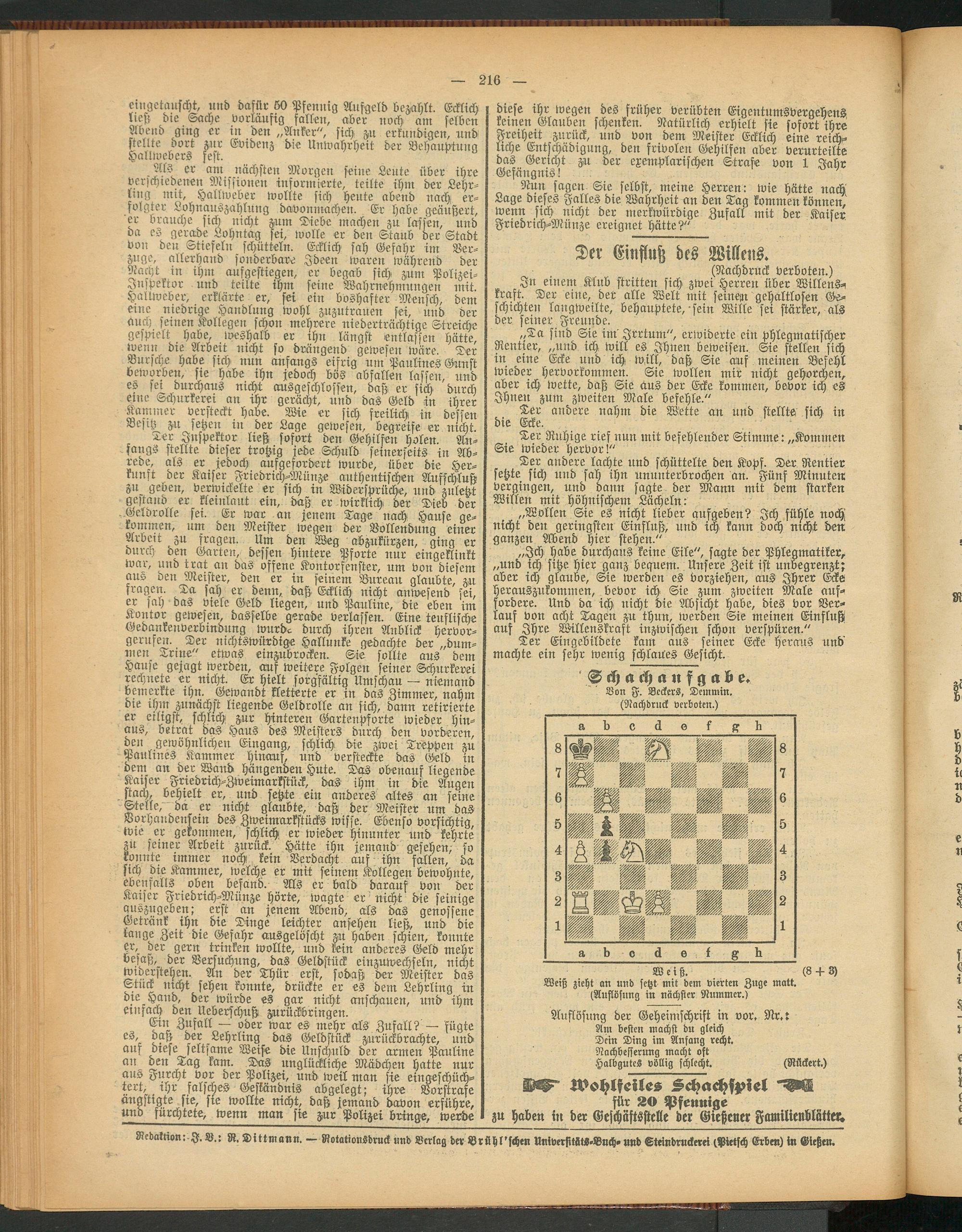 Redaktion: I. V.: R. Dittmann. — Rotationsdruck und Bcrlag der Brühl'schen UniversitätS-Buch.und Cttindruckerei (Pietsch Erben) in Gießen.