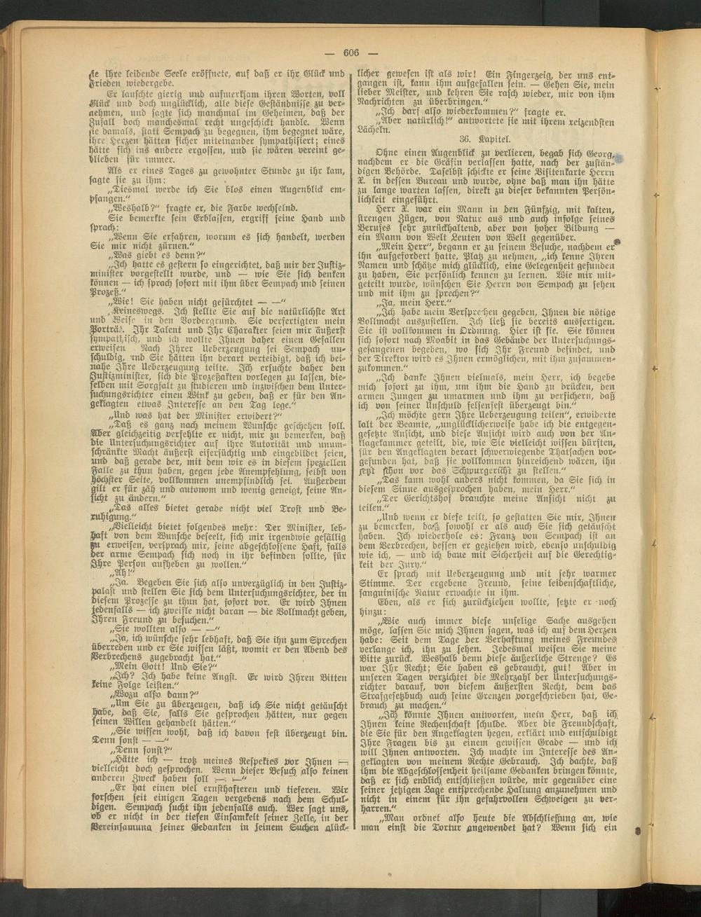 „Und wenn er diese teilt, so gestatten Sie mir, Ihnen zu bemerken, daH sowohl er als auch Sie sich getäuscht haben. Ich wiederhole es: Franz von Sempach ist an dem Verbrechen, dessen er geziehen wird, ebenso unschuldig wie ich, — und ich baue mit Sicherheit auf die Gerechtigkeit der Jury."