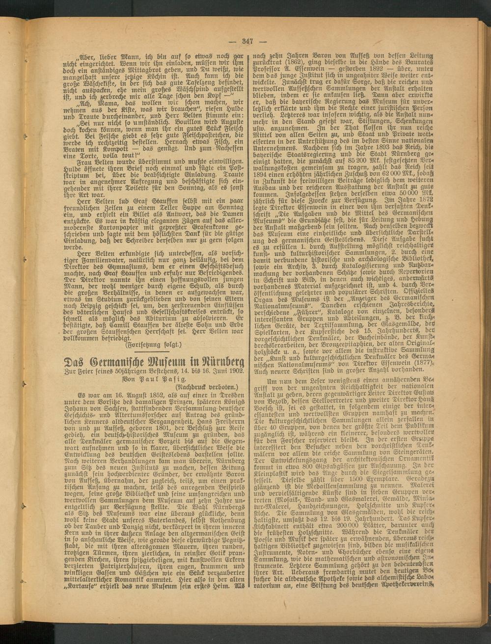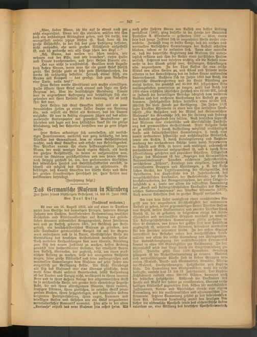Das Germanische Museum in Nürnberg Zur Feier seines 50jährigen Bestehens, 14. bis 16. Juni 1902.