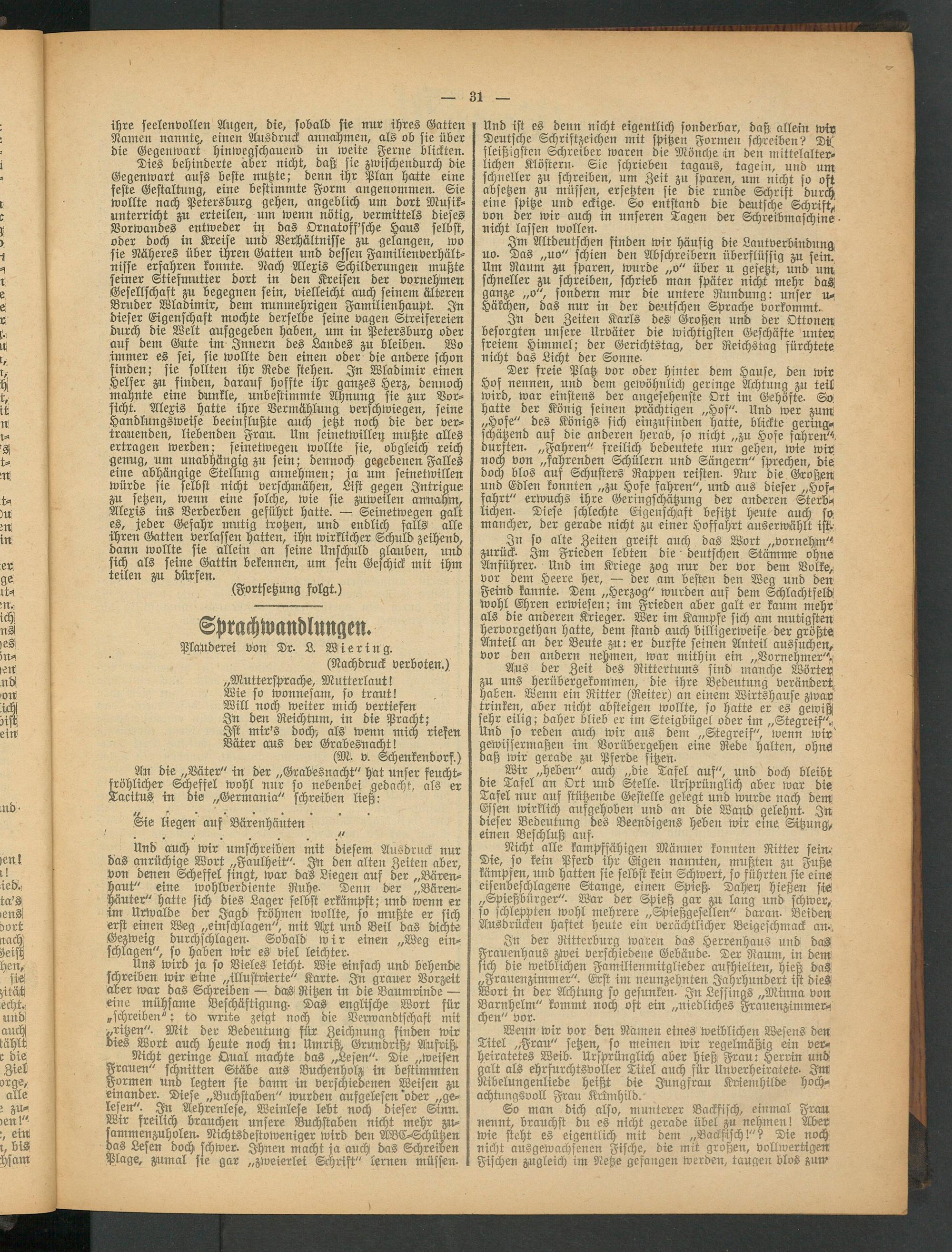 Aus der Zeit des Rittertums sind manche Wörter! zu uns herübergekommen, die ihre Bedeutung verändert, haben. Wenn ein Ritter (Reiter) an einem Wirtshause zwar trinken, aber nicht absteigen wollte, so hatte er es gewiß sehr eilig; daher blieb er im Steigbügel oder im „Stegreif"^ Und so reden auch wir aus dem „Stegreif", wenn wir" gewissermaßen im Vorübergehen eine Rede halten, ohne daß wir gerade zu Pferde sitzen-