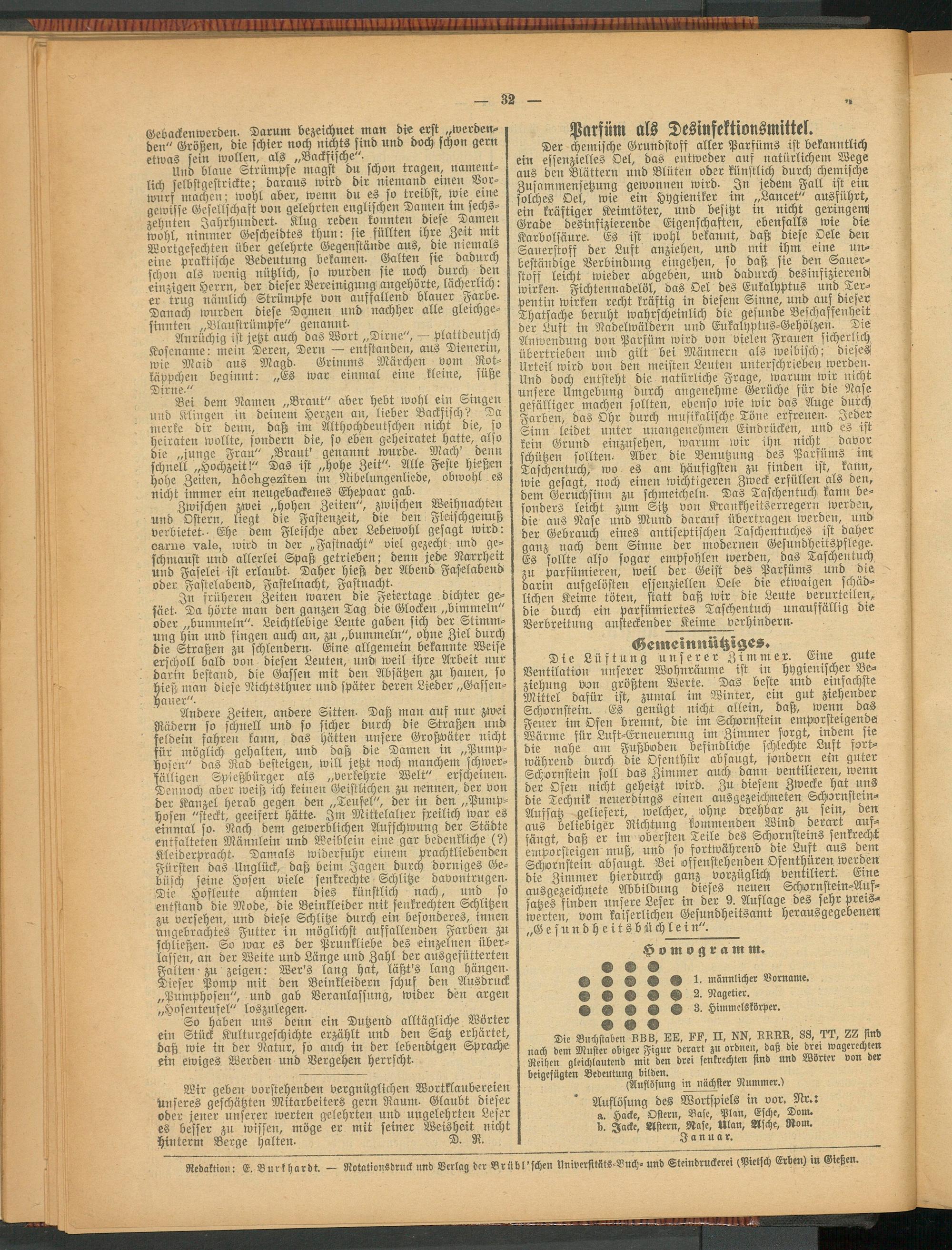 Redaktion: E. Burkhardt. — Rotationsdruck und Verlag der Br üb-'scheu UniverMtS-Buch- und Steindruckerei (Pietsch Erben) in Gießen.