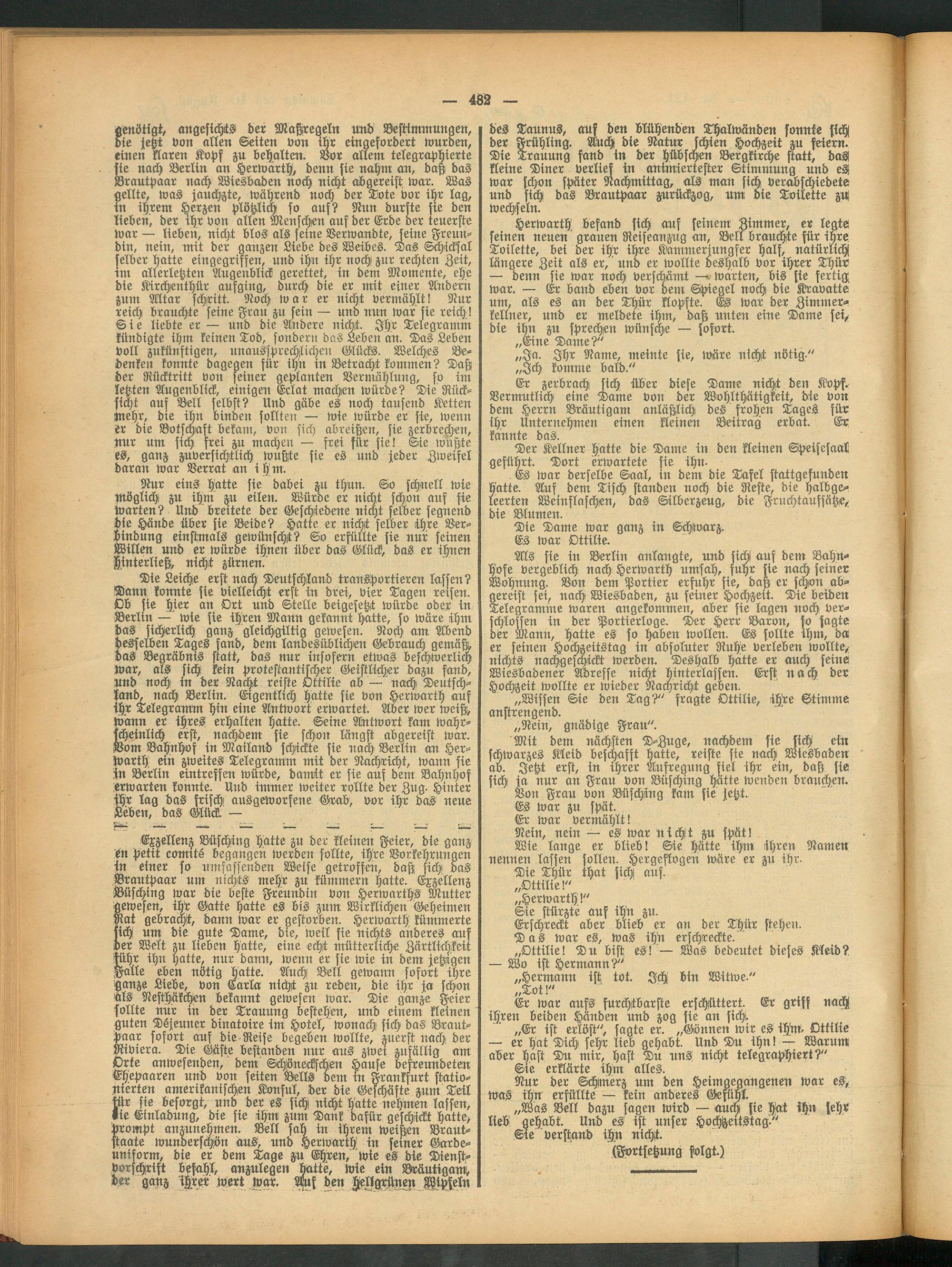 Rur eins hätte sie dabei zu thuu. So schnell wie möglich zu ihm zu eilen. Würde er nicht schon auf sie warten? Und breitete der Geschiedene nicht selber segnend die Hände über sie Beide? Hatte er nicht selber ihre Verbindung einstmals gewünscht? So erfüllte sie nur seinen Willen und er würde ihnen über das Glück, das er ihnen hinterließ, nicht zürnen/