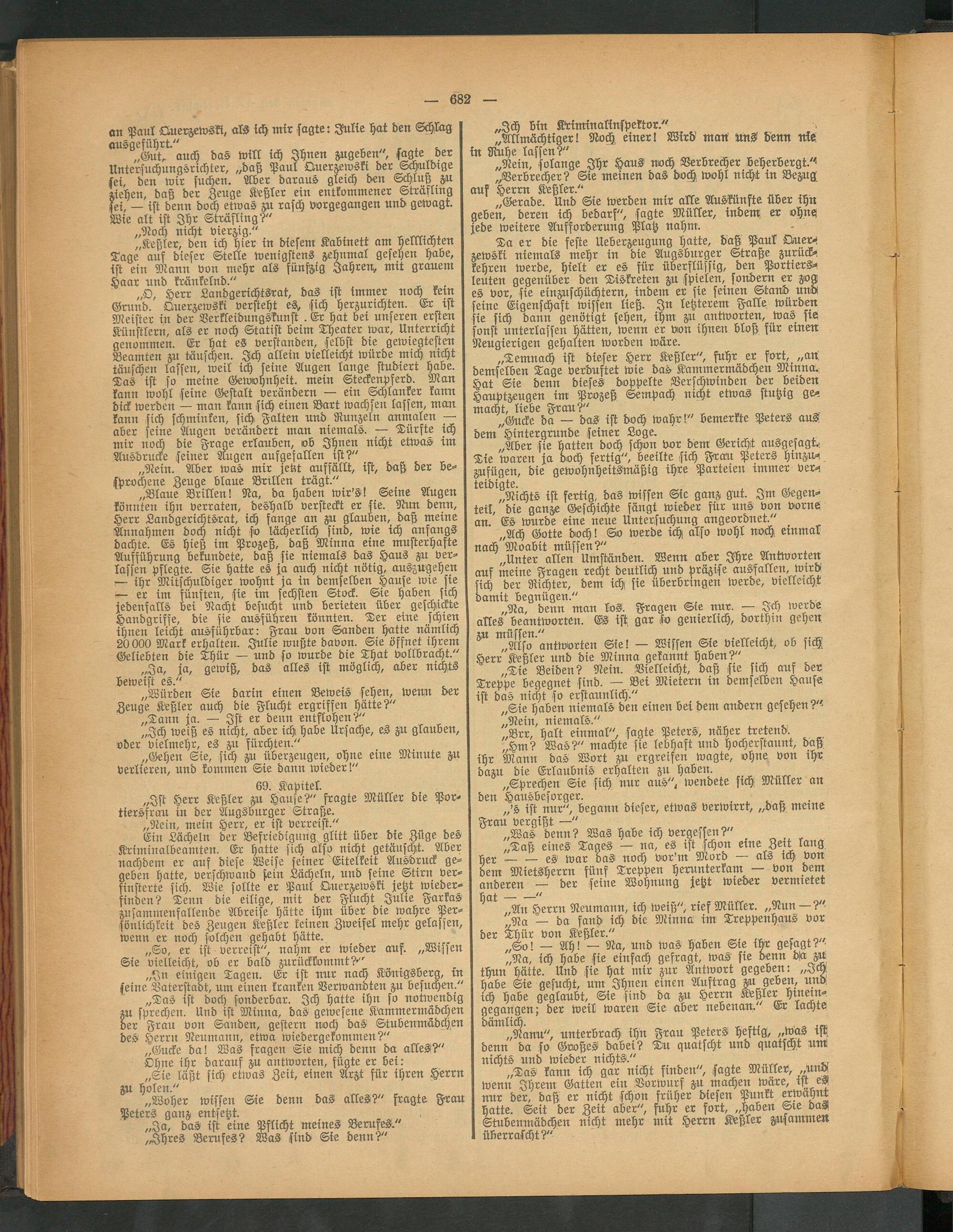 „Das kann ich gar nicht finden", sagte Muller, „und wenn Ihrem Gatten ein Vorwurf zu machen wäre, ist es nur der, daß er nicht schon früher diesen Punkt erwähnt I hatte. Seit der Zeit aber", fuhr er fort, „haben Sie das I Stubenmädchen nicht mehr mit Herrn Keßler zusammen I überrascht?"