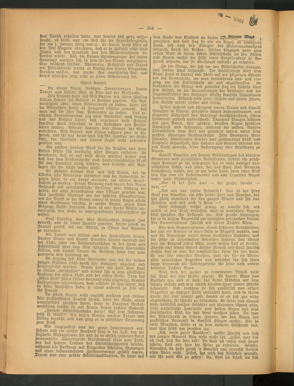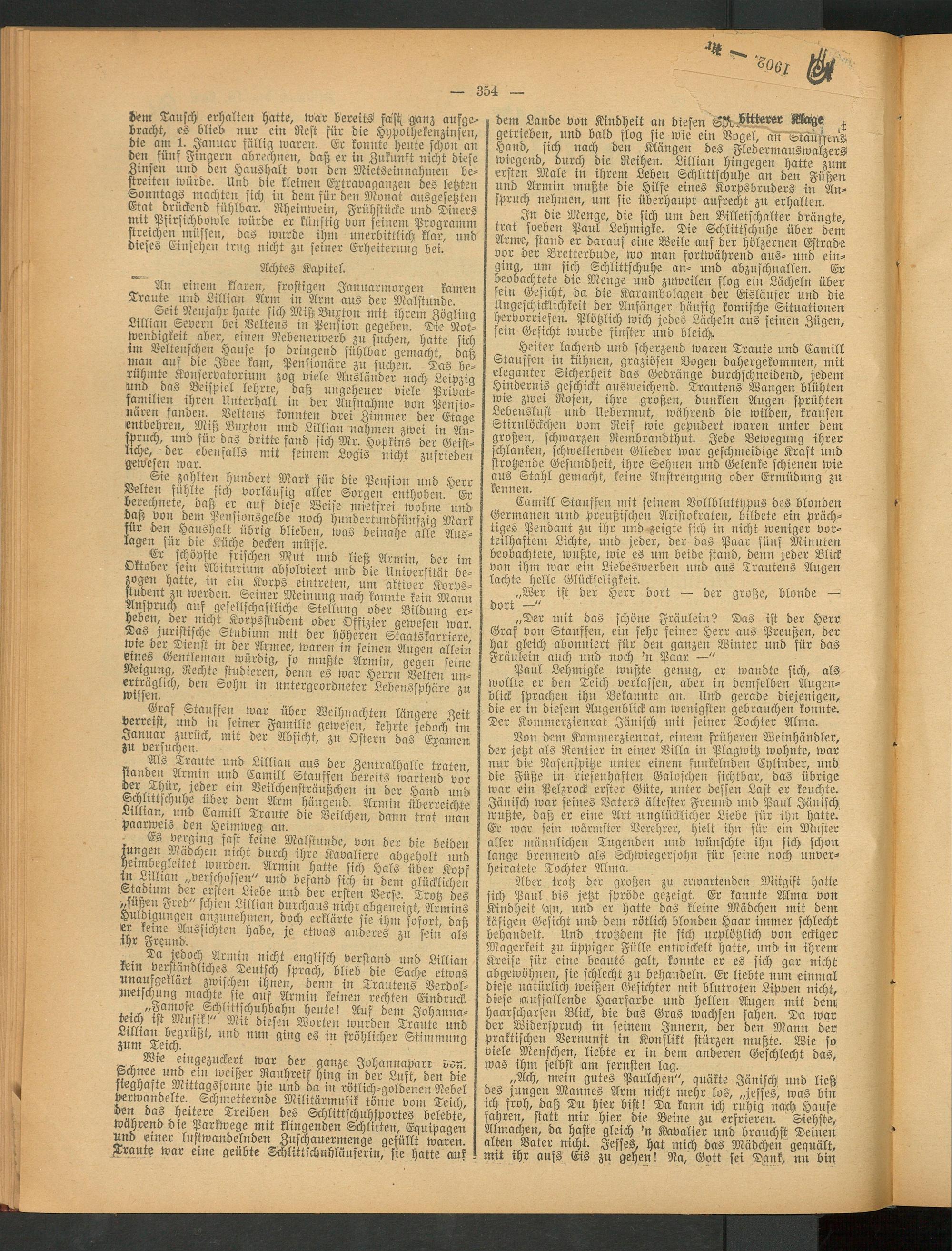 ri-, I^öpfte frischen Mut und ließ Armin, der im Eober seui Miturium absolviert und die Universität be- Zvgen haUe, tit ein Korps eintreten, um aktiver Korps- werden. Seiner Meinung nach konnte kein Mann Ampruch auf gesellschaftliche Stellung oder Bildung erheben, der nicht Korpsstudent oder Offizier gewesen war. Das iuristische Studium mit der höheren Staatskarricre, wre der L-ienft t» der Armee, waren in ferne» Augen allein Aues Gentlenia» würdig, so mußte Armin, gegen seine Neigung, Rechte studieren, denn es war Herrn Velteri un- wissen ^, in untergeordneter Lebenssphäre zu