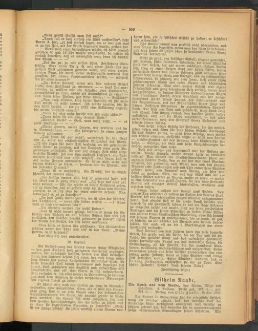 Des Autors 71. Geburtstag hat die erfreuliche Erschei- nung im Gefolge gehabt, daß das deutsche Volk die Raabe sche Muse wenigstens annähernd nach Gebühr zu schätzen gelernt hat, das beweisen die in ununterbrochener Folge erscheinenden Neuauflagen seiner Schriften. Alle