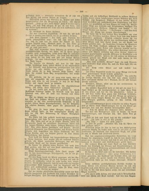 Im nächsten Augenblick hatte er sich mit ein vaar kräftigen Stößen zu ihr durchgearbeitet; er legte ihren Arm! in den seinen und bat sie, sich festzuhalten. Indem et sie mit dem linken Arm gegen das Gedränge beschützte, suchte er rückwärts mit ihr aus der Menge zu gelangen, und nach einem langen Kampf, der eine warme Röte auf seine Wangen zauberte, gelang es ihm endlich, sich sreizumacheu.