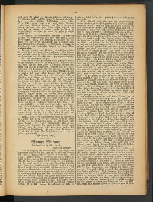 Tas ist wahrlich die verkehrte Welt! Im August und September mußten wir die Oefen Heizen, und jetzt möchten wir unsere Sommerkleider wieder hervorsuchen. Gar manche schütteln darüber bedenklich die Köpfe, indem sie unter Hinweis auf die Ähnlichen abnormen Witterungsver- hältnisse der letzten Jahre der Meinung sind, wir befänden Uns überhaupt inmitten einer großen Üimatischen Umwälzung. Jenen zur Beruhigung hat Schreiber dieses in einer Chronik Nachforschungen angestellt und herausgefunden, daß wir armen Erdenwürmer uns wahrlich wegen des gedachten Umstandes nicht zu beunruhigen brauchen; denn ähnliche Unregelmäßigkeiten sind von dem ehrwürdigen Chronisten schon vor tausend Jahren und später verzeichnet worden, und zwar unter Beifügung von Thatsachen, gegen die unsere Feststellungen nichts bedeuten wollen. Daß unsere klimatischen Gesetze im Laufe der Zeit Veränderungen erfahren werden, ist in der ganzen Entwickelung der Erde be