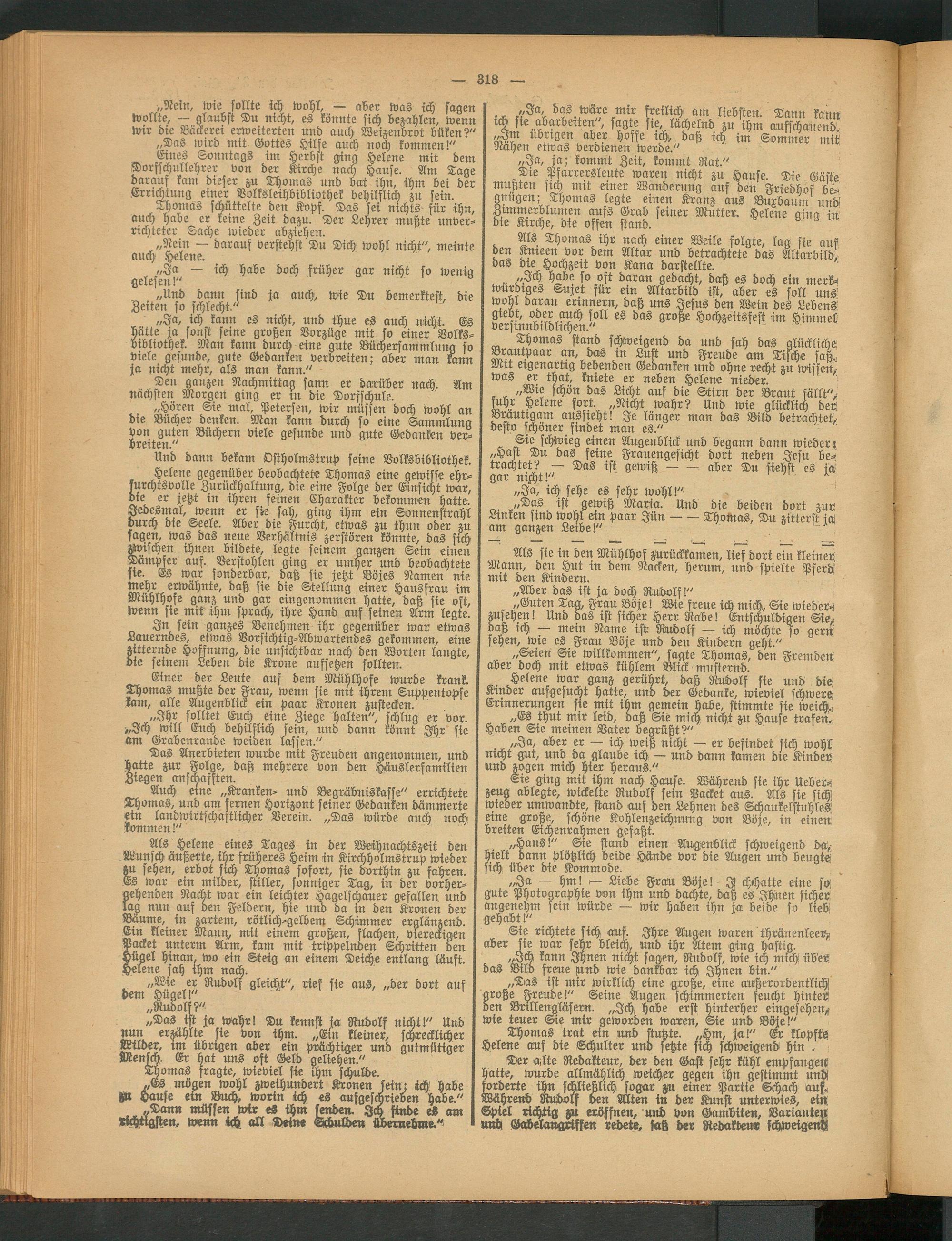 Eines Sonntags im Herbst ging Helene mit dem Dorfschullehrer von der Kirche nach Hause. Am Tage darauf kam dieser zu Thomas und bat ihn, ihm bei der Errichtung einer Volksleihbibliothek behilflich zu sein.