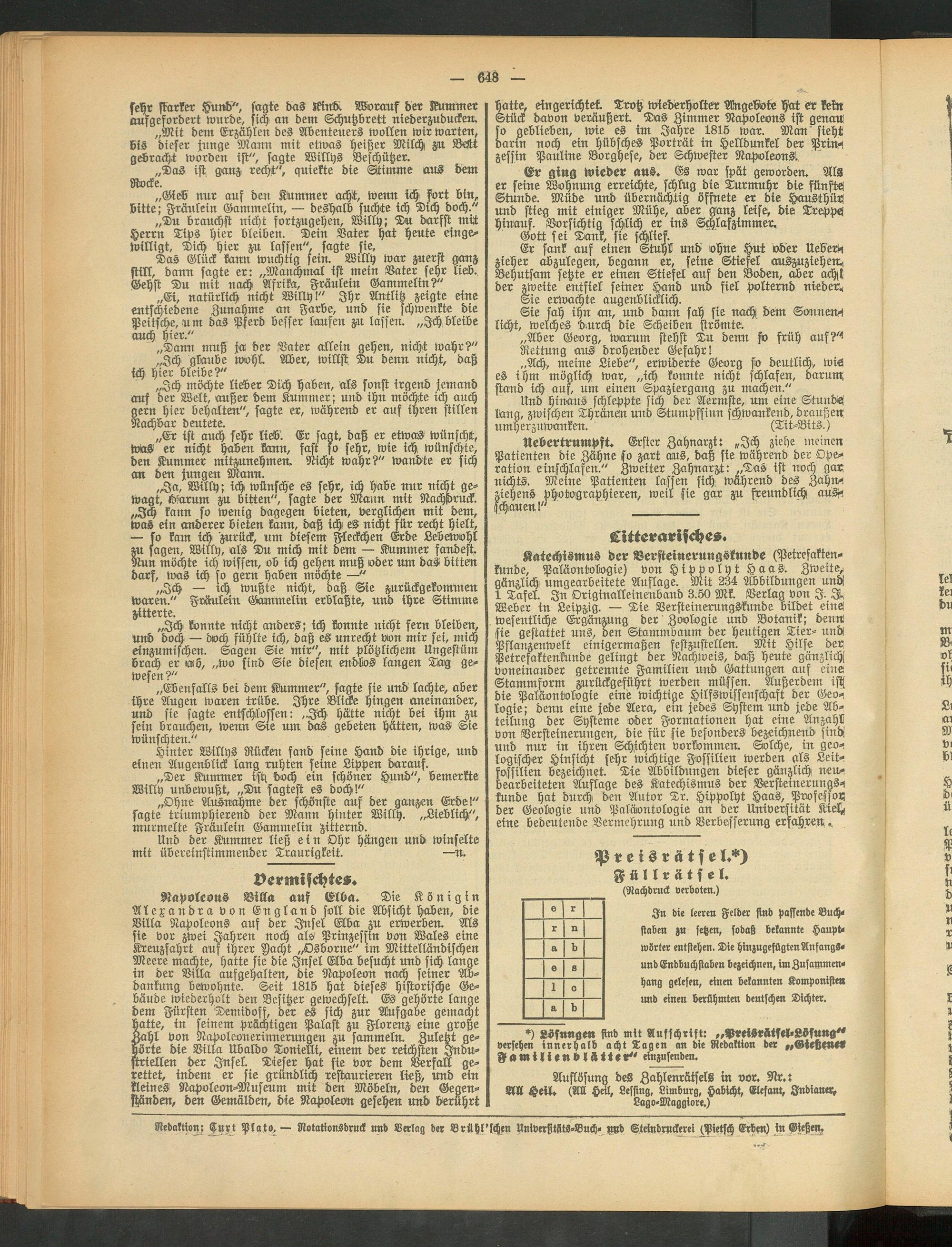 Redaktion: Curt Plato. — Rotationsdruck und Verlag der Brühl'fchen UniversitsitS-Buch- Wd Steindruckeret (Pietsch Erben) in Gieße«,