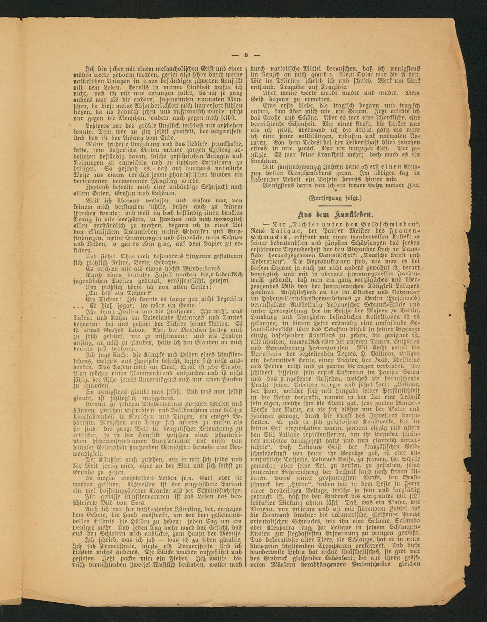 Kommt zu solchem Mißverhältnis zwischen Wollen und Können, zwischen Erstrebtem und Vollbrachtem eine völlige Un erfahrenheit in Mensch en und T in gen, eilt ewiges Bedürfnis, Menschen und Tinge sich anders zu nialen als sie sind: die ganze Welt in bengalischer Beleuchtung zu erblicken, so ist der Konflikt zwischen einer phantastischen hyperempfindsamen Künstlernatur und einer von banaler Gesundheit strotzenden Menschheit beinahe eine Notwendigkeit.