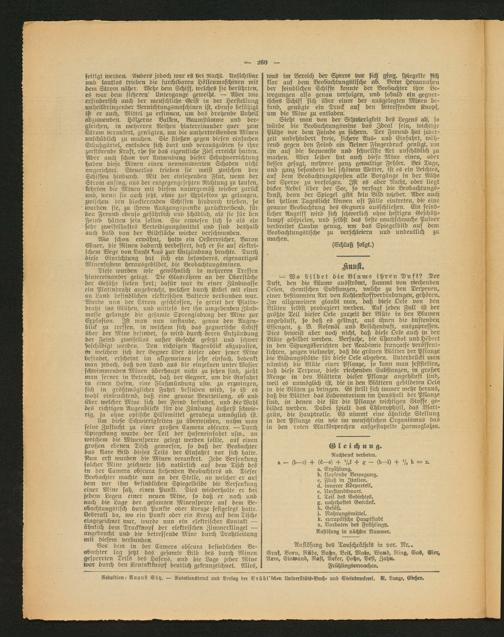 — Wo bildet die Blume ihren Duft? Der Duft, den die Blume ausströmt, stammt von riechenden Oelen, chemischen Substanzen, welche zu den Terpenen, einer bestimmten Art von KohlenstofsverbindungeN, gehören. Im allgemeinen glaubt man, daß diese Oele von den Blüten selbst produziert werden. Auf jeden Fall ist der größte Teil dieser Oele zurzeit der Blüte in den Blumen angehäuft, so daß es gelingt, aus ihnen die duftenden Essenzen, z. B. Rosenöl und Veilchenduft, auszupressen. Dies beweist aber noch nicht, daß diese Oele auch in der Blüte gebildet werden. Versuche, die Charabot und Hebert in den Sitzungsberichten der Acadsmie franyaise veröffentlichten, zeigen vielmehr, daß die grünen Blätter der Pflanze die Wldungsstätte für diese Oele abgeben. Unterdrückt man nämlich die Blüte einer Pflanze, so kann man feststellen, daß diese Terpene, diese riechenden Substanzen, in großer Menge in den Blättern dieser Pflanze angehäuft sind, weil es unmöglich ist, die in den Blättern gebildeten Oelp in die Blüten zu bringen. W stellt sich immer mehr heraus, daß die Blätter das Laboratorium im Haushalt der Pflanze sind, in denen die für die Pflanze wichtigen Stoffe. gebildet werden. Dabei spielt das Chlorophyll, das Blattgrün, die Hauptrolle. Es nimmt eine ähnliche Stellung in der Pflanze ein wie im menschlichen Organismus das in den roten Blutkörperchen ausgestapelte Haemoglohm.