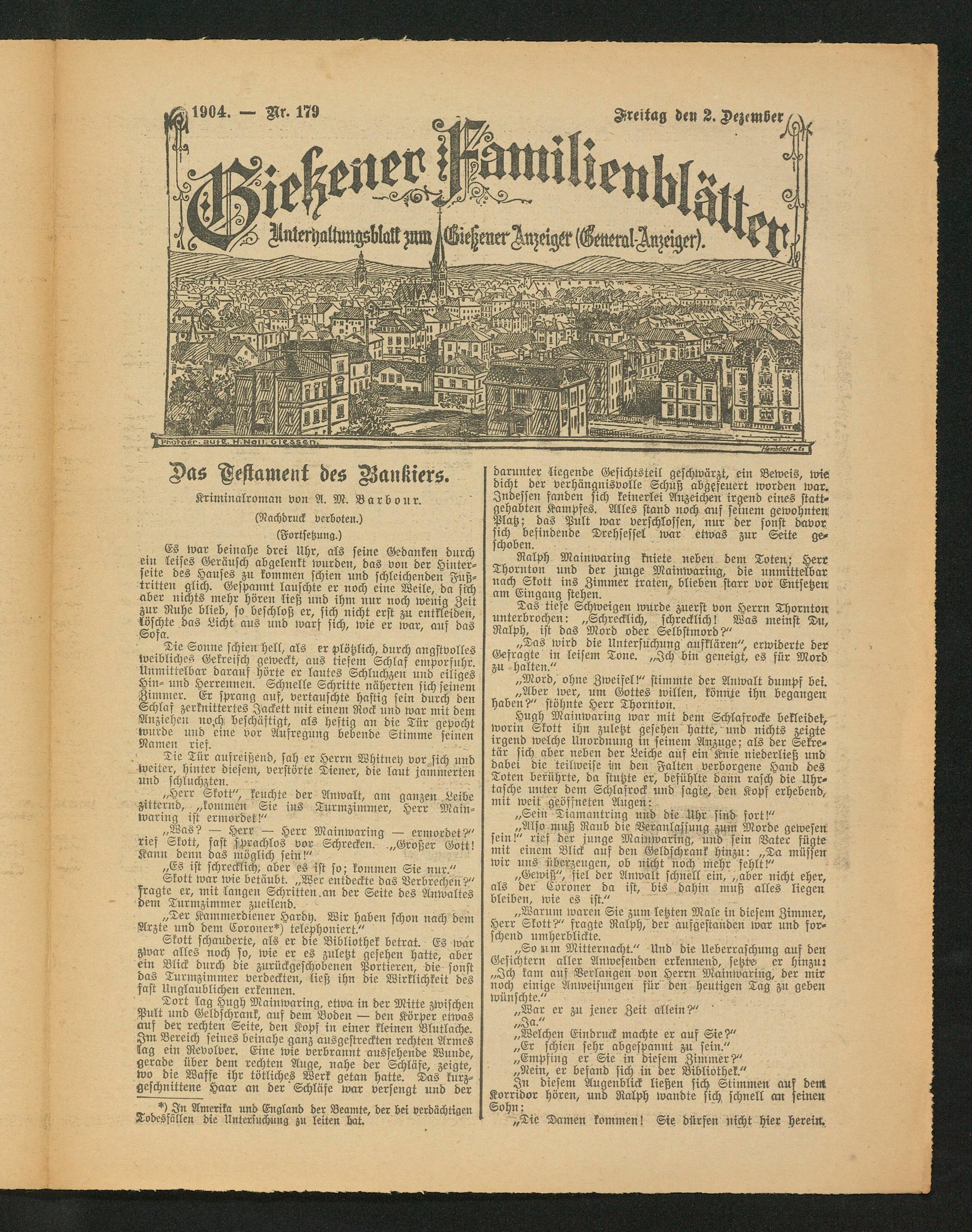 „Gewiß", fiel der Anwalt schnell ein, „aber nicht eher, als der Coroner da ist, bis dahin muß alles liegen bleiben, wie es ist."