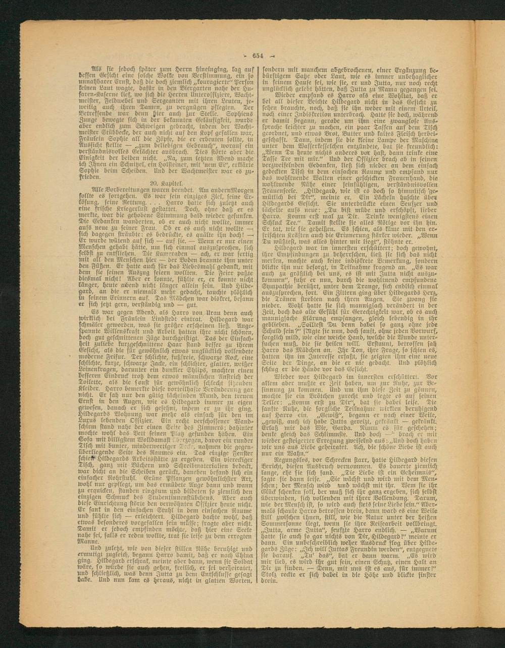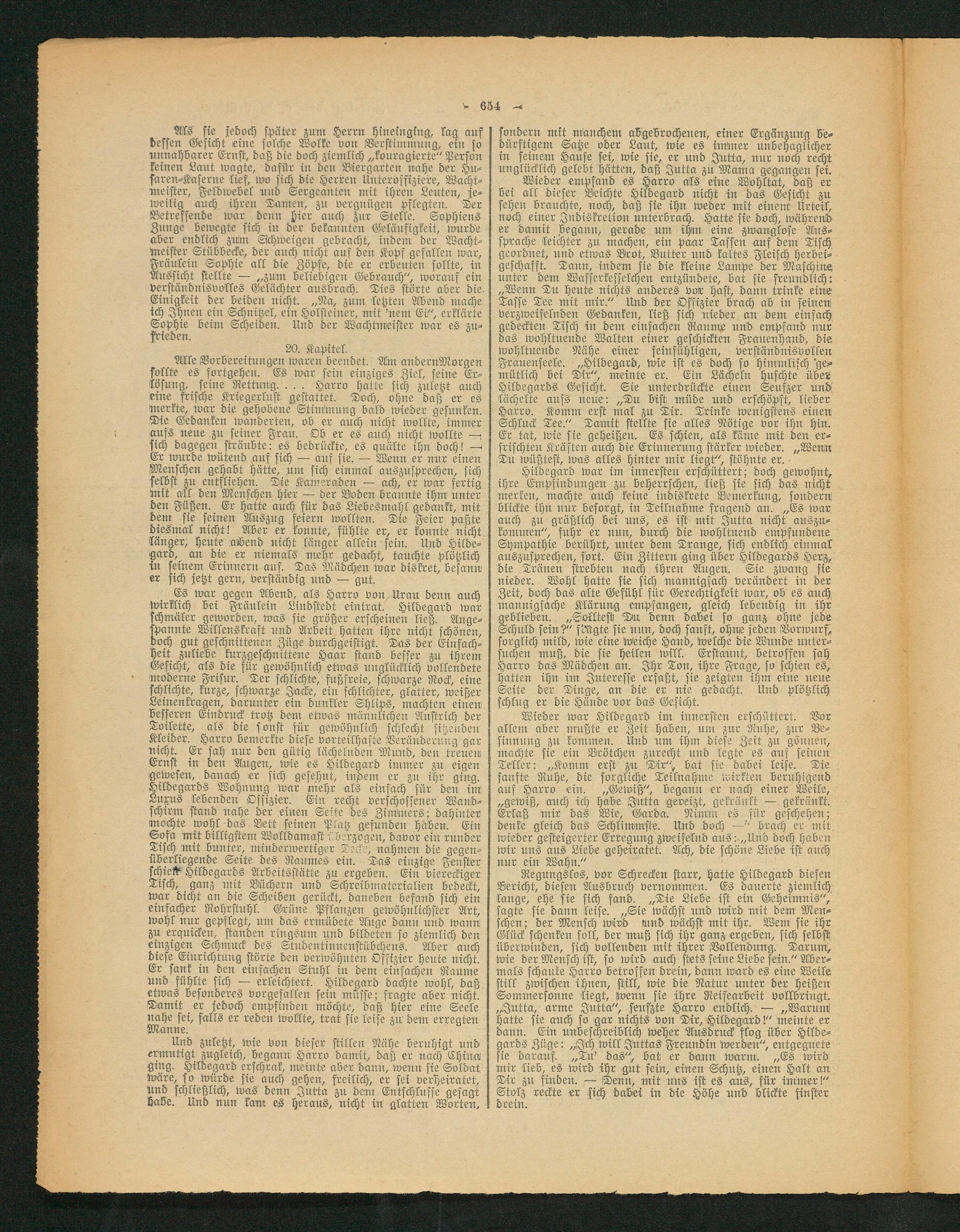 Und zuletzt, wie von dieser stillen Nähe beruhigt und ermutigt zugleich, begann Harro damit, daß er nach Chinai ging. Hildegard erschrak, meinte aber dann, wenn sie Soldat wäre, so würde sie auch gehen, freilich, er sei verheiratet, und schließlich, was denn Jutta zu den: Entschlüsse gesagt habe. Und nun kam es heraus, nicht in glatten Worten,