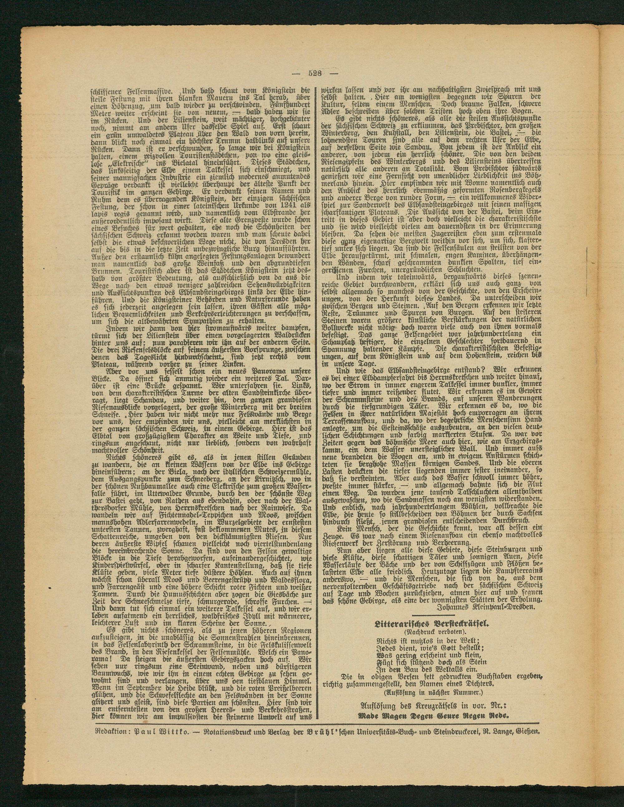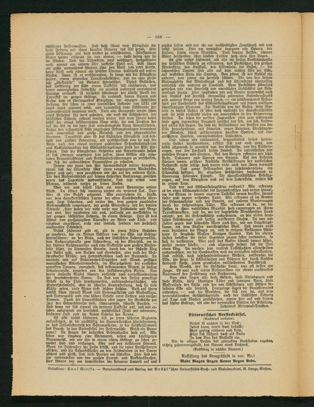 Redaktion: Paul Wittko. — Rotationsdruck und Verlag der Brühl'schen Universitäts-Buch- und Steindruckerei, R. Lange, Gießen.