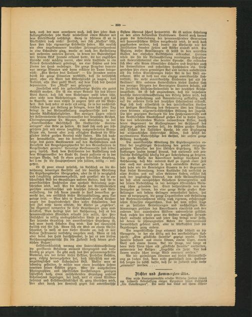 System üb!eraus scharf hervortritt. Es ist unsere Schulung an den alten kulturellen Traditionen. Soviel auch immer gegen die Ueberladung der Heranwachsenden Generation mit humanistischem Wissen vorgebracht wird, so muß doch zugestanden werden, daß damit die Ehrfurcht vor der Zivilisation fremder Zeiten und Völker erweckt wird. Ein Wglanz dieser Bemühungen ist selbst in den untersten Klassen der einfachen Volksschulen erkennbar. Hiervon reden die für tue Weltausstellung vereinigten Lehrpläne und Unterrichtsmittel eine beredte Sprache. Sie erstrecken sich über alle Arten öffentlicher Schulen und beziehen auch die Universitäten und technischen Hochschulen ein. Diese genießen hier einen gewaltigen Ruf und werden unbestritten als die besten Einrichtungen dieser Art in der WM anerkannt. Gibt es doch nur eine einzige amerikanische Universität, die mehr amerikanische Studenten hat als die Berliner! Alle anderen Universitäten dieses Landes sind von weniger Bürgern der Vereinigten Staaten besucht, als die Friedrich Wilhelm-Universität in der deutschen Reichshauptstadt. Es ist fast anzunehmest, daß die imposante deutsche Unterrichtsausstellung den Erfolg haben wird, daß sich diese Hochachtung und Bewunderung zukünftig auch auf die anderen Teile des deutschen Schulwesens erstreckt. Regt sich doch allmählich in den intellektuellen Kreisen der hiesigen Bevölkerung das Bedauern über den Mangel einer feineren allgemein-ästhetischen Bildung der Jugend. Die hier gezeigten Vorlagen für den Zeichenunterricht und den künstlerischen Wandschmuck gießen Oel in dieses Feuer. Die von bedeutenden Malern entworfenen Bilder, durch deren Gegenwart im Klassenzimmer der Geschmack der Zöglinge gebildet toerbett soll, die Büsten großer Denker und Dichter der klassischen Epoche, dre eine Ergänzung des altsprachlichen Unterrichts bilden- sind höchst bemerkenswerte Niederschläge des Geistes, der unsere ganze Bildung durchzieht.