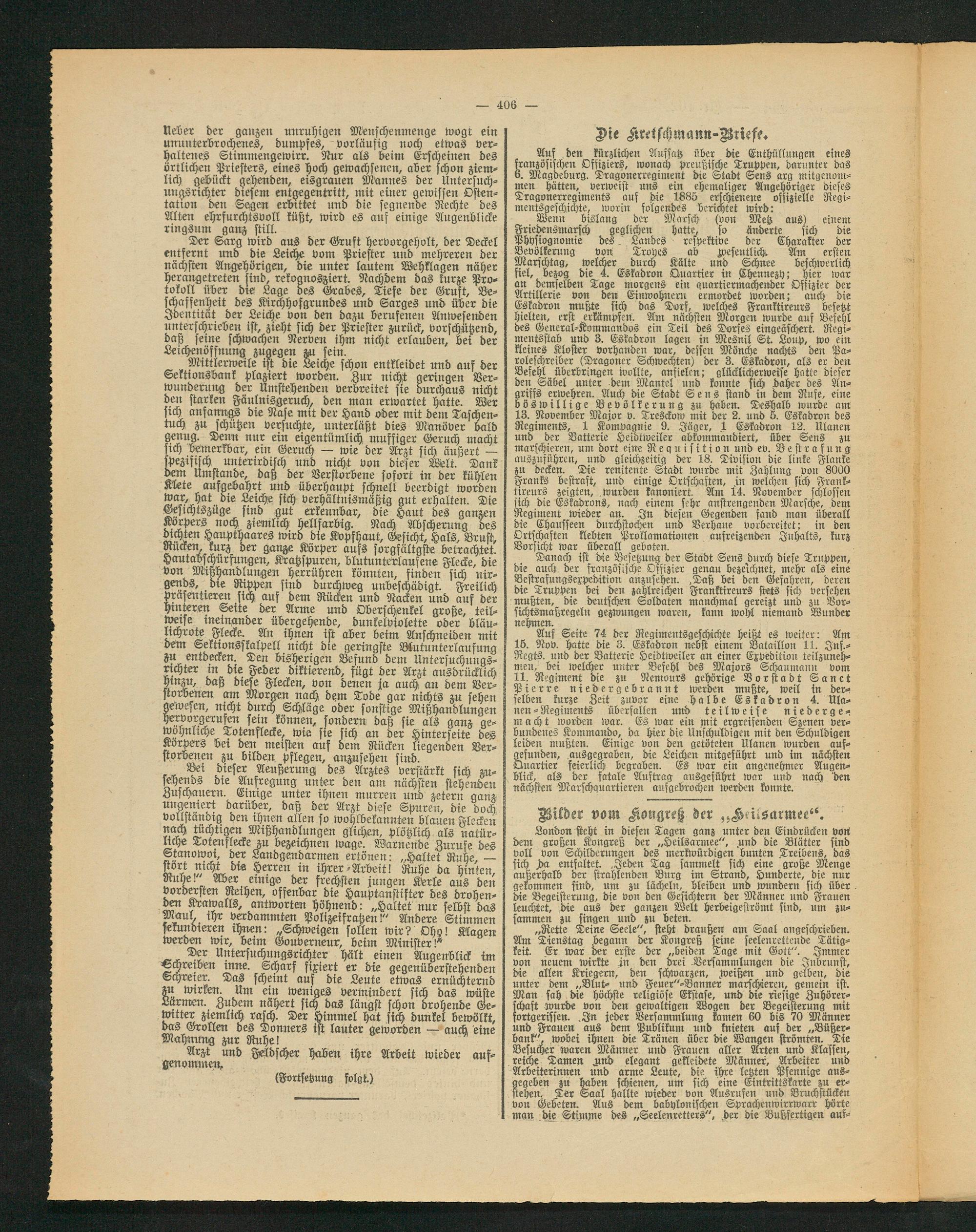 Auf den kürzlichen Aufsatz über die Enthüllungen eines französischen Offiziers, wonach preußische Truppen, darunter das 6. Magdeburg. Tragonerregiment die Stadt Sens arg mitgenommen hätten, verweist uns ein ehemaliger Angehöriger dieses Tragonerregiments auf die 1885 erschienene offizielle Regimentsgeschichte, worin folgendes berichtet wird: