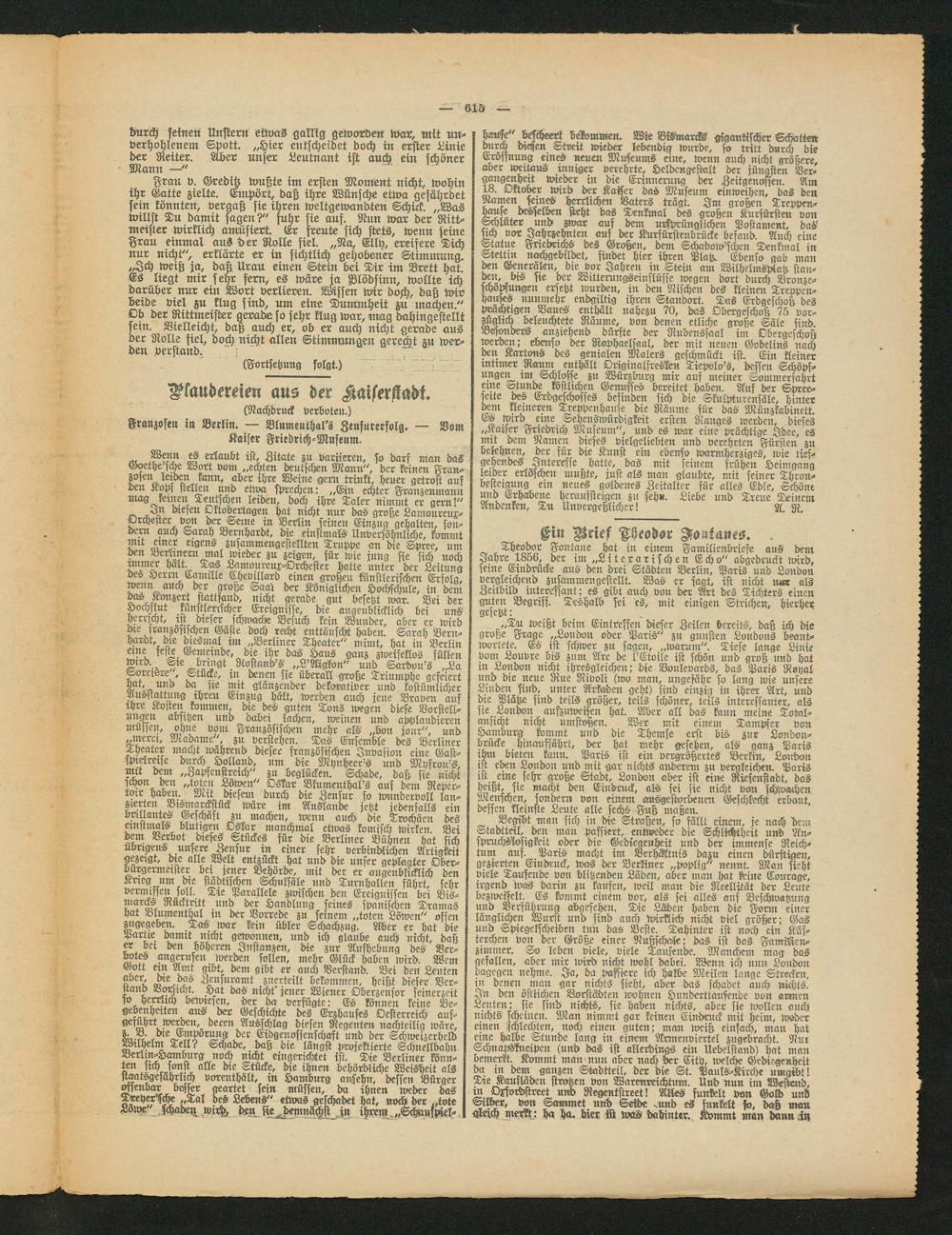 Franzosen in Berlin. — Blumenthal's Zensurerfolg. — Vom Kaiser Friedrich-Museum.