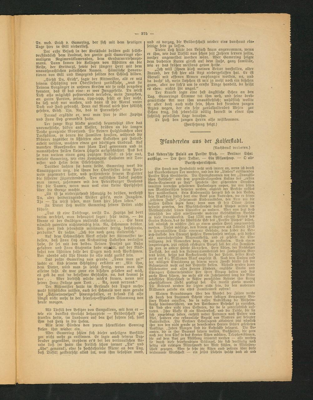 Das Redern'sche Palais am Pariser Platz. — Berliner Schul ausflüge. — Der Herr Doktor. — Ein Misanthrop. — O alte