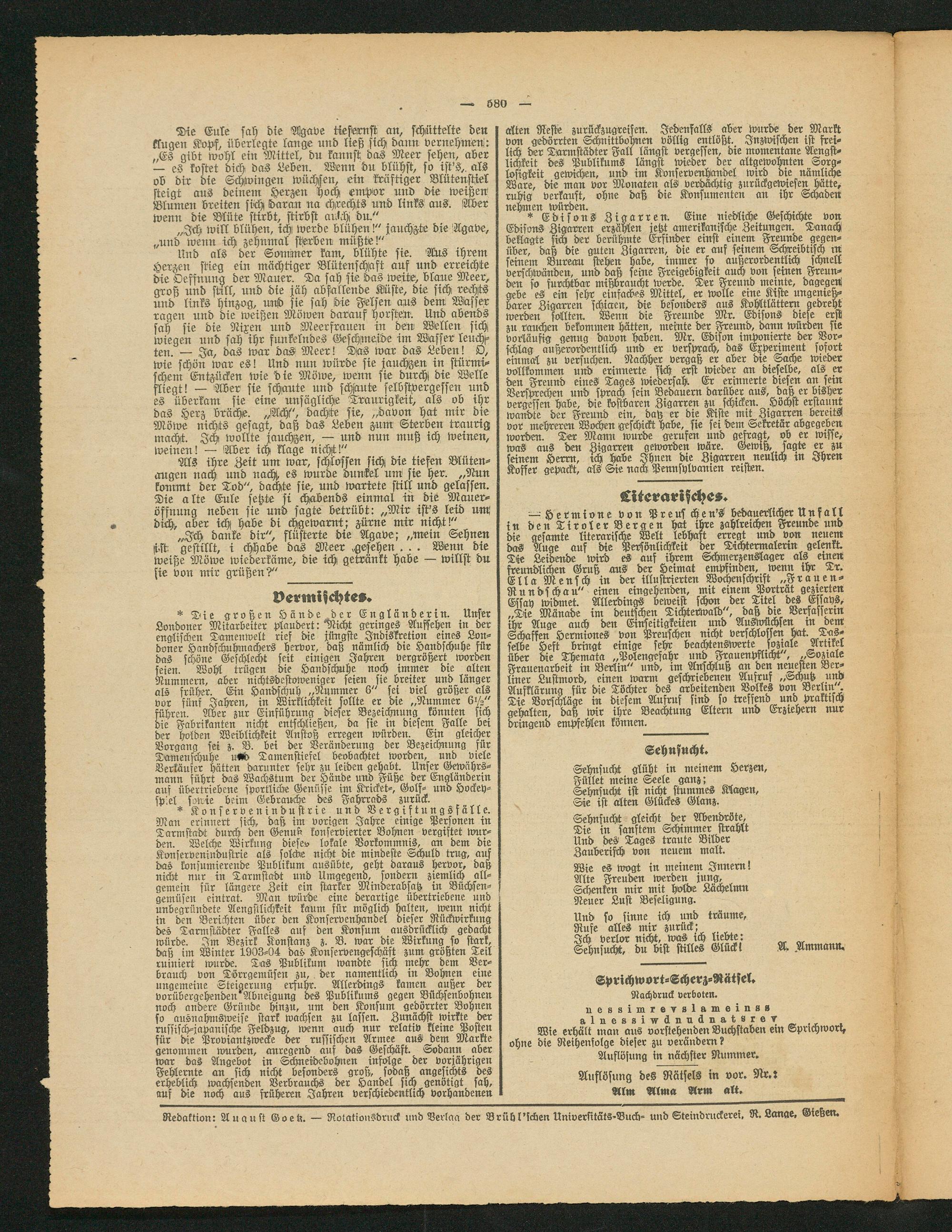 Redaktion: Auaust Goetz. — Rotationsdruck und Verlag der Brüh l'icken Universitäts-Buch- und Steindrnckerei, R. Lange, Gießen.