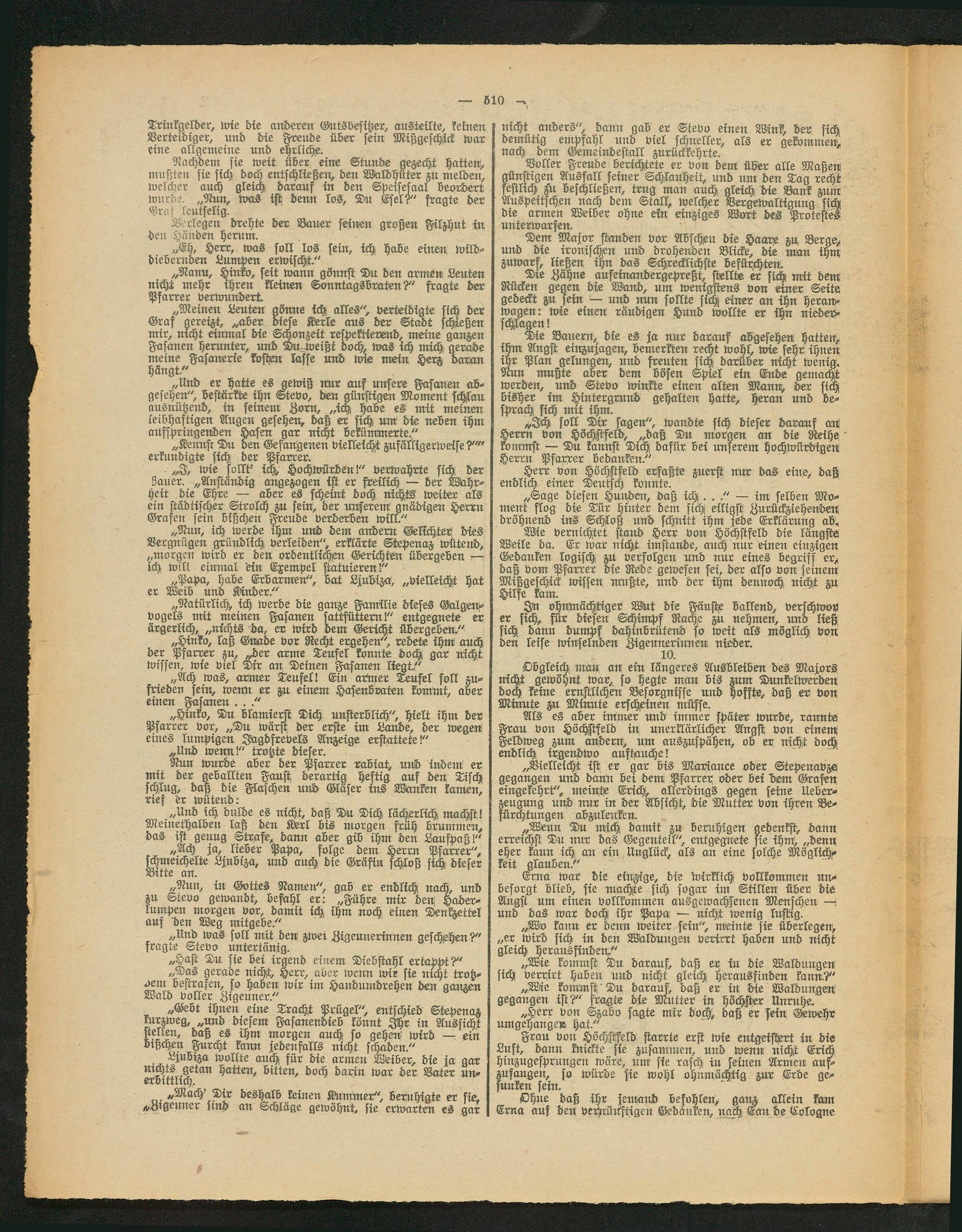 „Nun, in Gottes Namen", gab er endlich! nach, und zu Stevo gewandt, befahl er: „Führe mir den Haderlumpen morgen vor, damit ich ihm noch einen Denkzettel auf "den Weg mitgebe."
