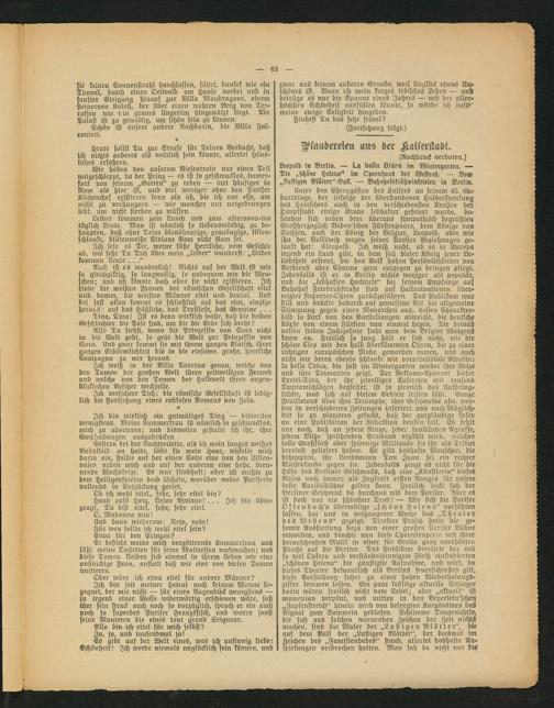 (Nachdruck verboten.) Leopold in Berlin. — La bella Olero im Wintergarten. — Die „schöne Helena" tut Opernhaus des Westens. — Vom „Lustigen Blatter "-Ball. — Bahnhofskrähwinkeleien in Berlin.