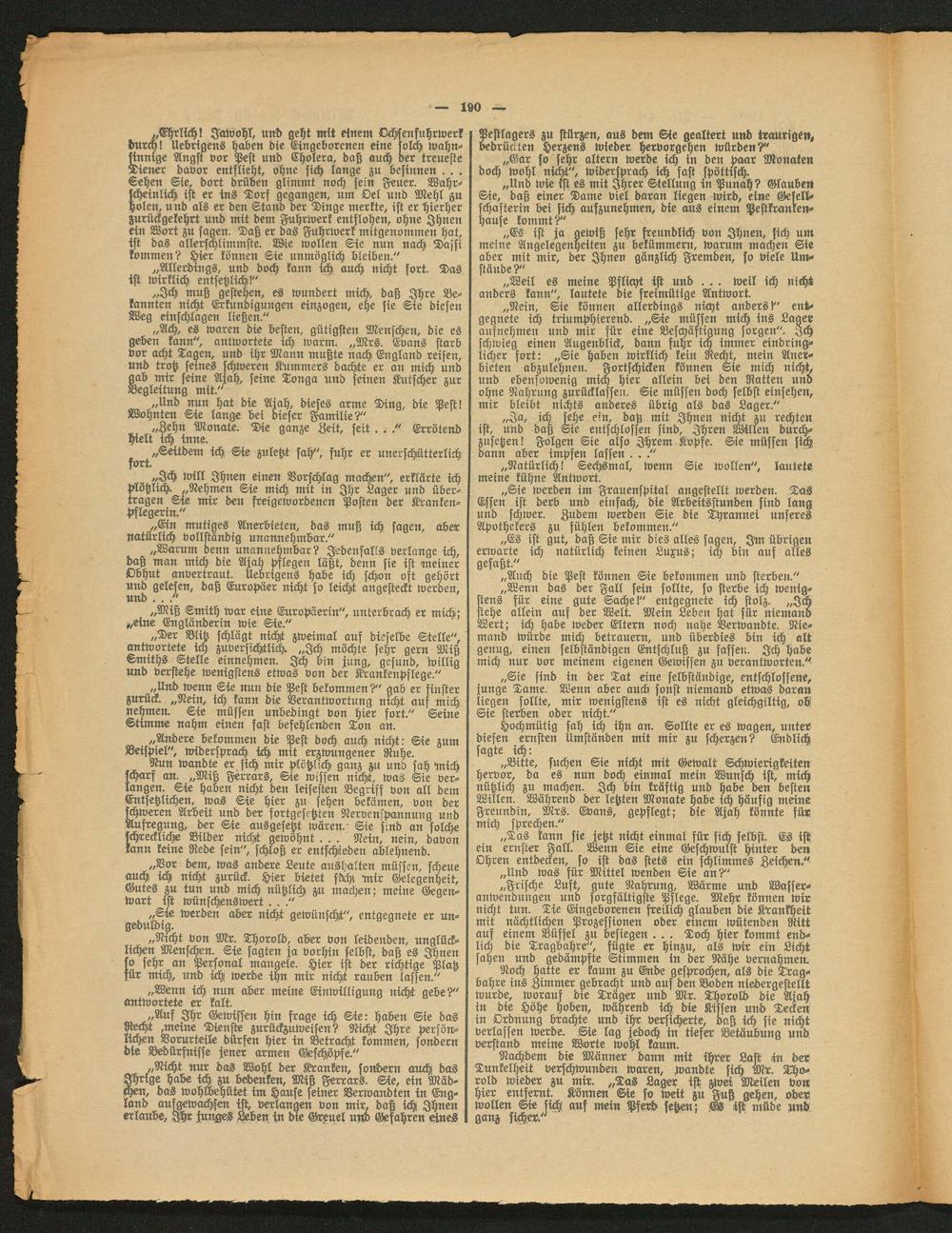 „Warum denn unannehmbar? Jedenfalls verlange ich, daß man mich die Ajah pflegen läßt, denn sie ist meiner Obhut anvertraut. Uebrigens habe ich schon oft gehört und gelesen, daß Europäer nicht so leicht angesteckt werden, und. . ."