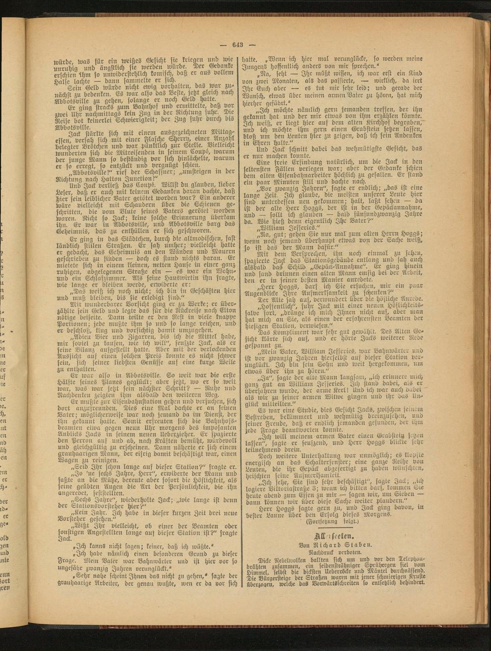 „Abbotsville!" rief der Schaffner; „umsteigen in der Richtung nach Hatton Junction!"