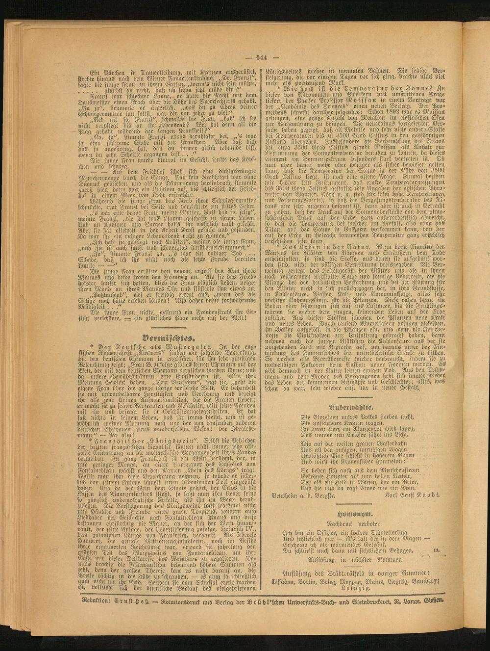 Redaktion: wrnst Heß. — Rotationsdruck und Verlag der Brühl'schen Universitäts-Buch- und Sleindruckeret. N. Lange. Gießen.