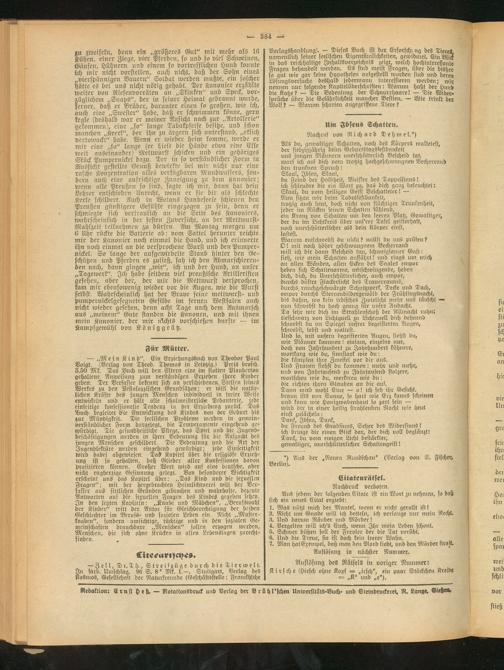 Redaktion: Ernst Heß. — Rotationsdruck und Verlag der Brühl'schen Universitäts-Buch- und Steindruckerei, R. Lange. Gießen»