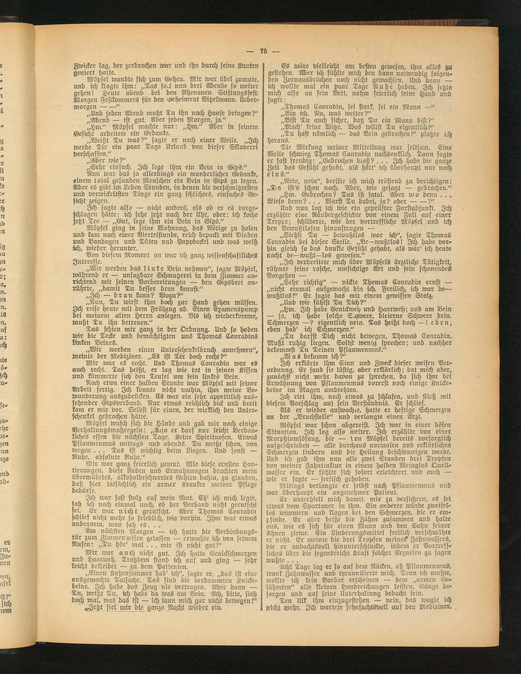Mir war es rocht. Und Thomas Conradin war es auch recht. Tas heißt, er lag wie tot in seinen Kissen und kümmerte sich den Teufel um fein linkes Bein.
