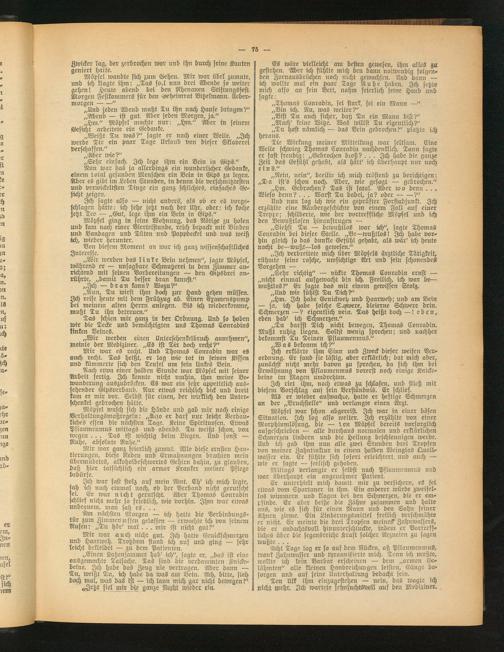 „Siehst Tu — bewußtlos war ich", sagte Thomas Conradin bei dieser Stelle. „Be—wußtlos! Ich habe vorhin gleich so das dunkle Gefühl gehabt, als wär' ich! heute nacht be—wußt—los gewesen."